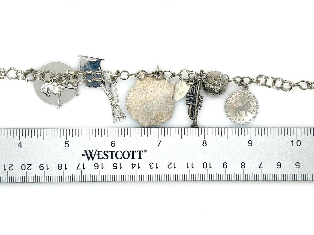 This item remains in excellent condition overall. There are some light marks on the back of the academic charm, which may be pewter, but they do not detract from the bracelet’s beauty. The combination of marked and unmarked charms creates a nostalgic and meaningful piece.