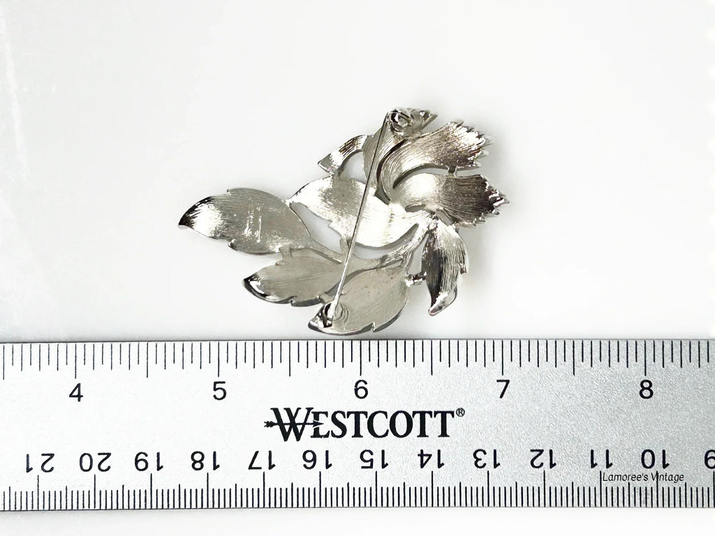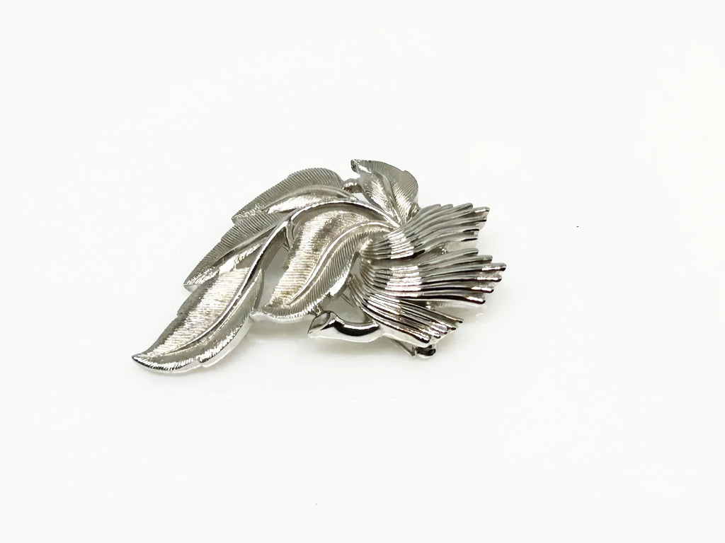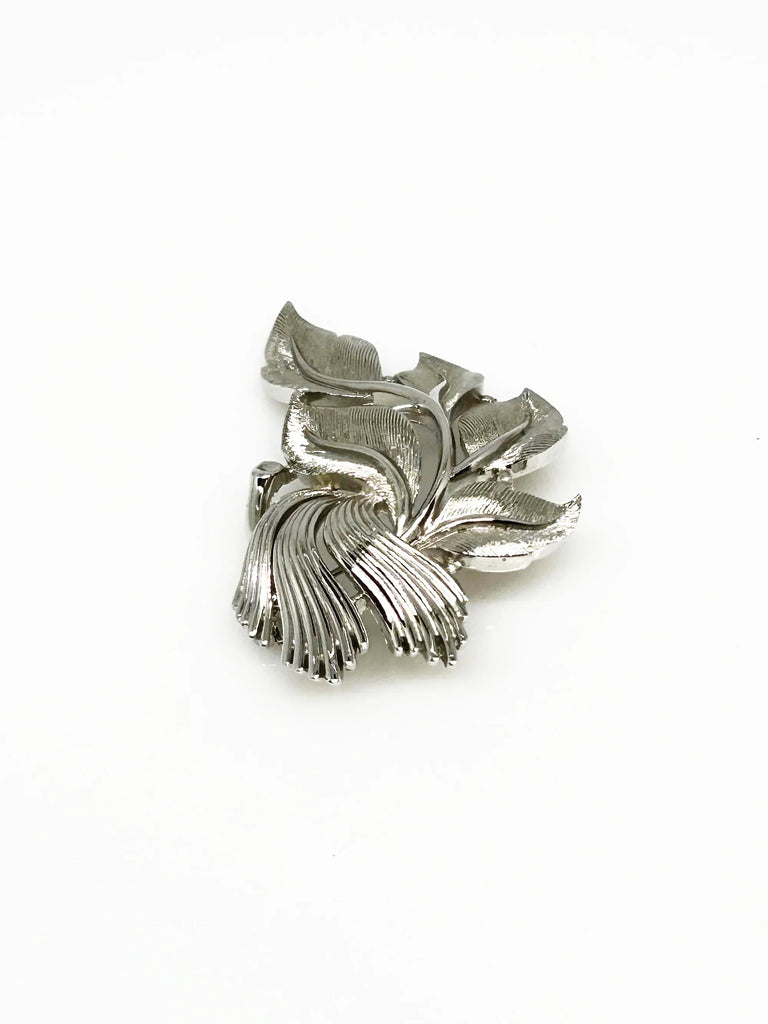 Vintage Crown Trifari Brushed Silvertone Leaf Brooch