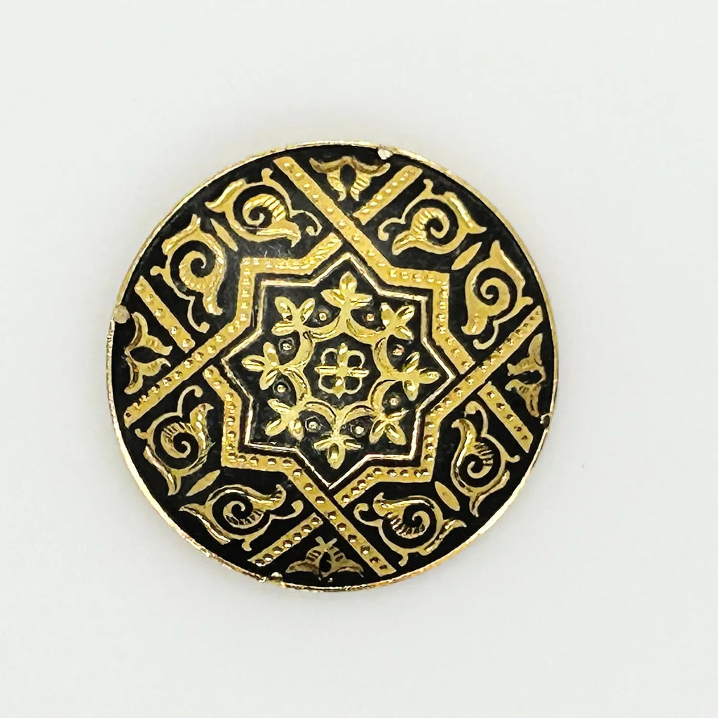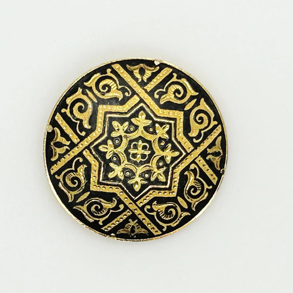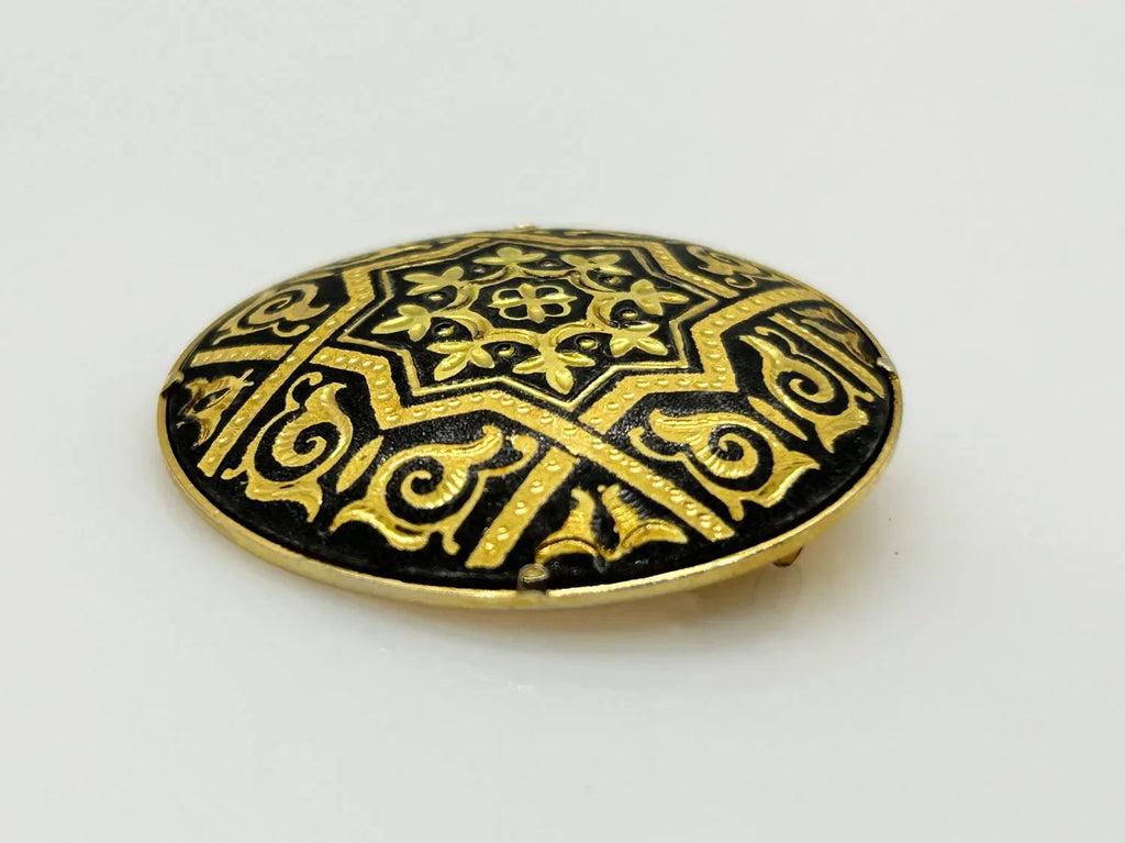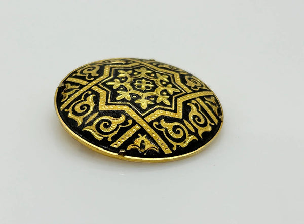 Striking Black and Gold Geometric Vintage Damascene Brooch