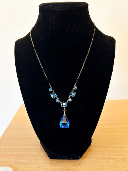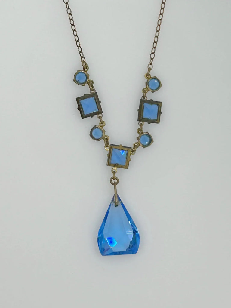 Vivid Blue Deco Necklace with Drop - Lamoree’s Vintage