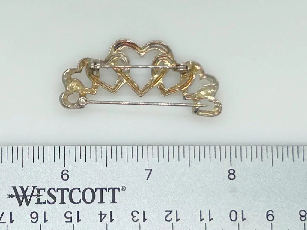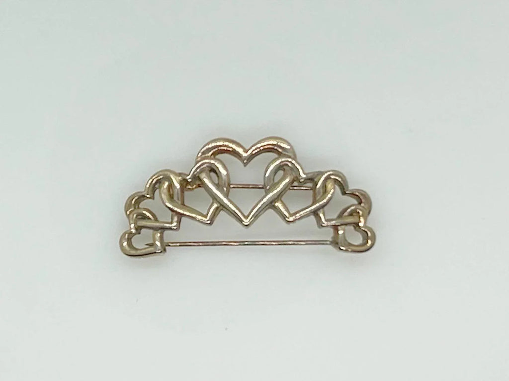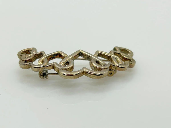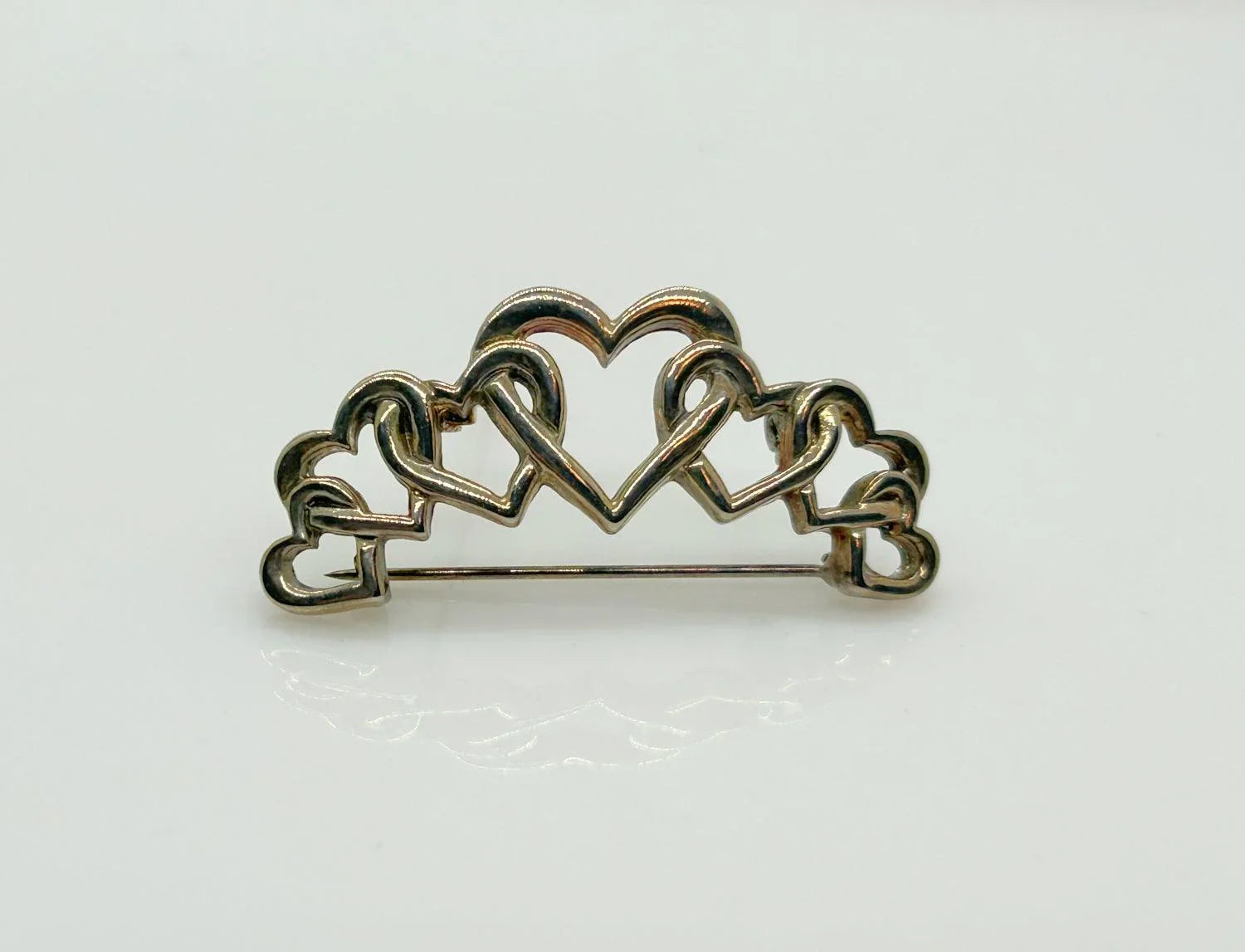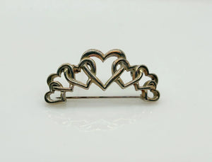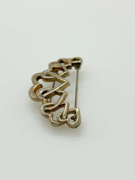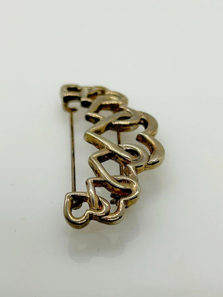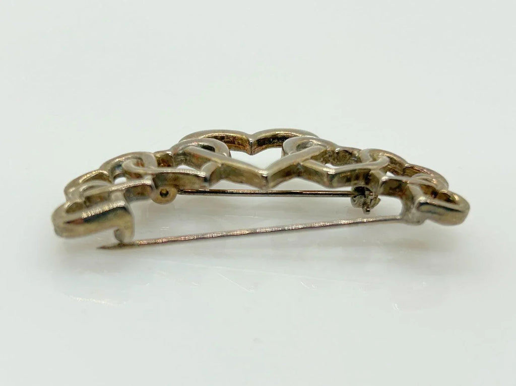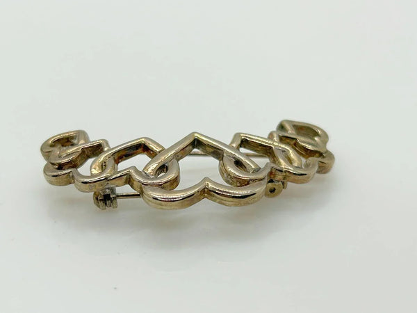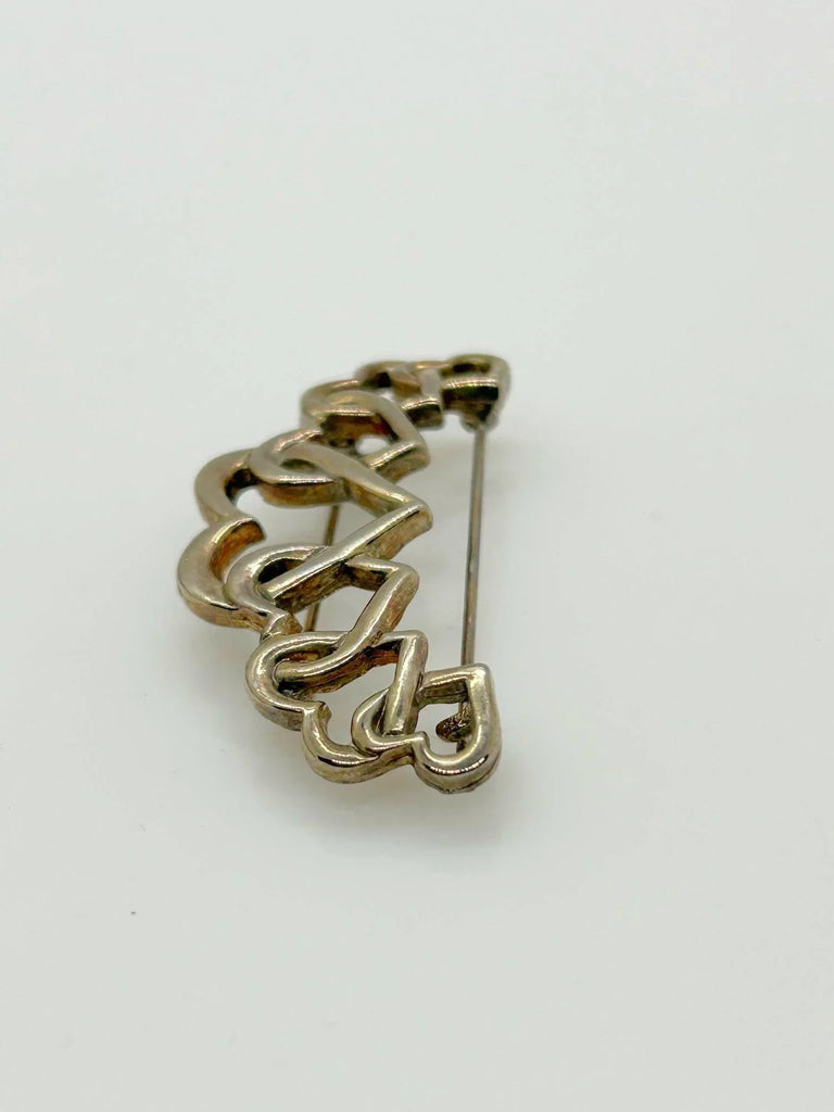 Unusual Vintage Entwined Open Hearts Silver Tone Brooch