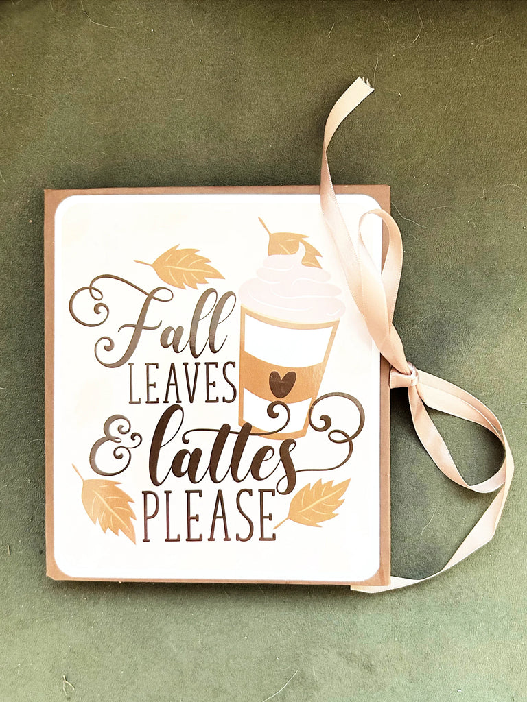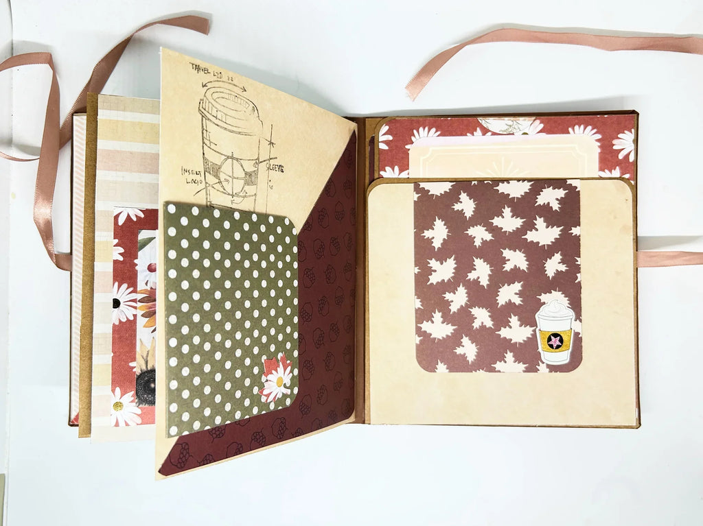 This charming album showcases autumn leaves, seasonal flowers, and delightful illustrations of warm drinks. Centered around family, home, fall, and coffee, it includes dedicated spaces for your personal notes and mementos, allowing you to customize it easily. Tied with a smooth pale amber ribbon, the album features numerous inserts and fold-outs, including over 25 slots. Measuring 6.5" x 6", it is a beautiful keepsake crafted with exceptional care and attention. Don’t miss the chance to make this unique treasure yours today!