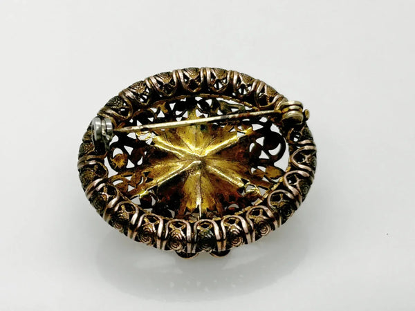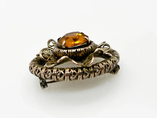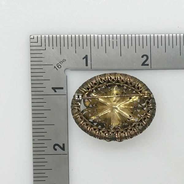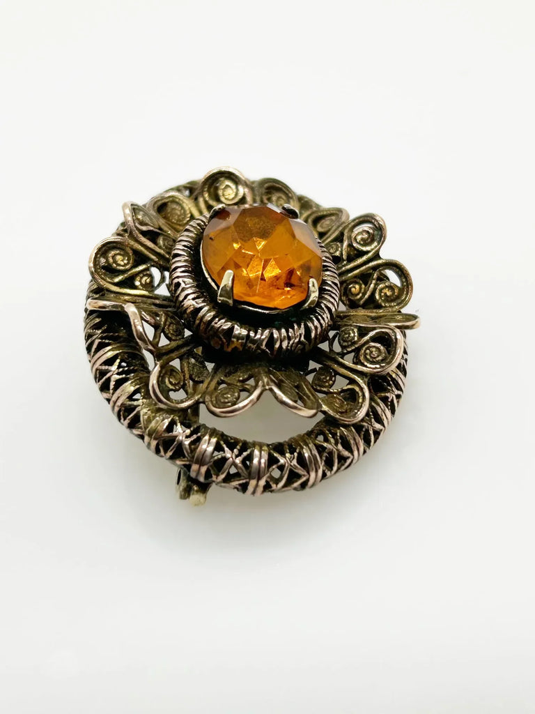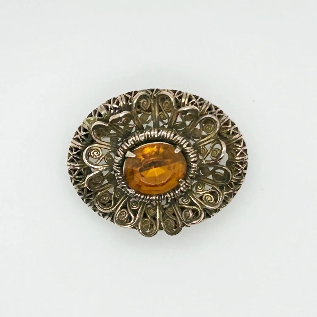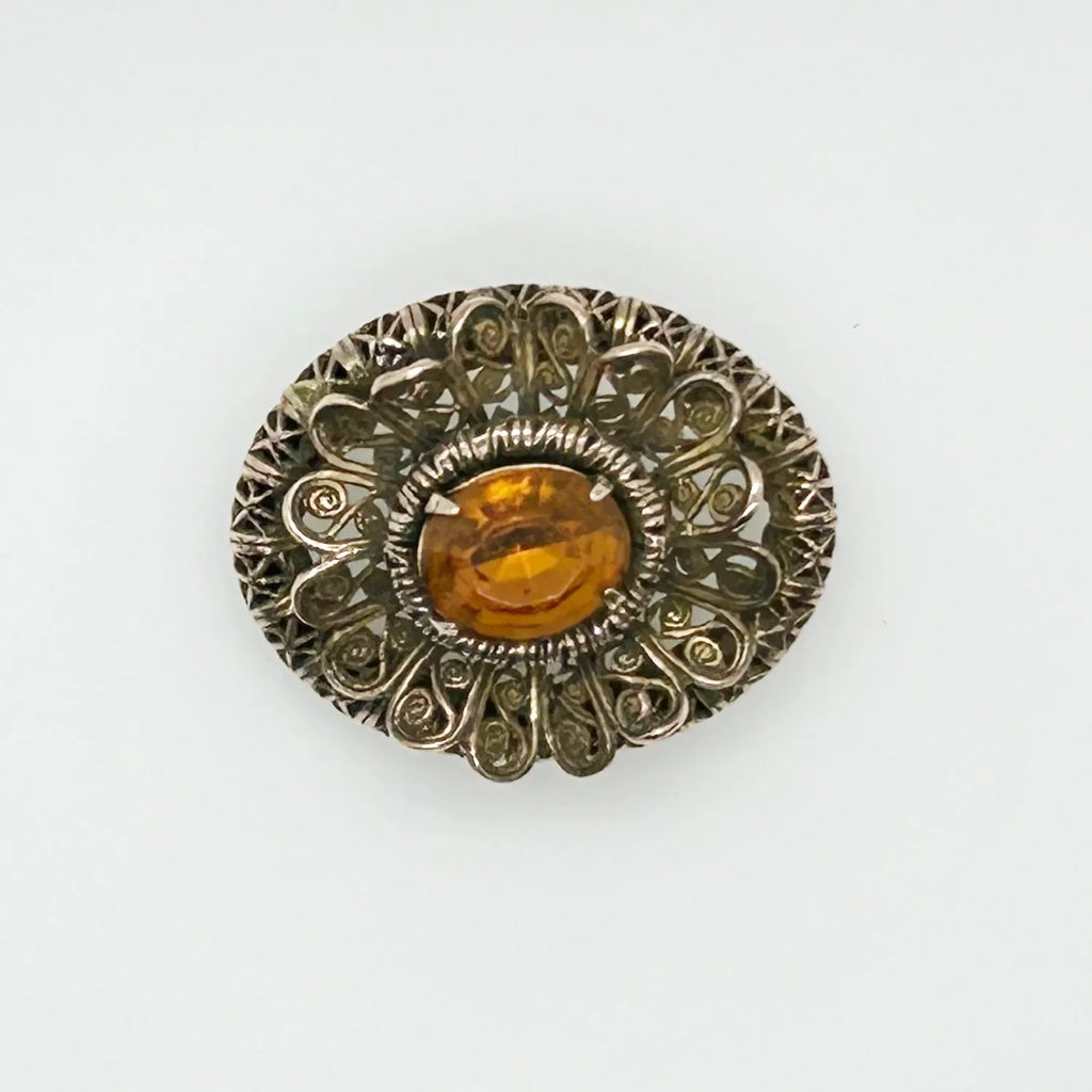 Vintage European Oval Floral Brooch with Amber Colored Stone – Lamoree’s Vintage