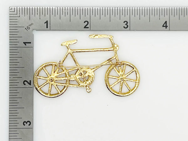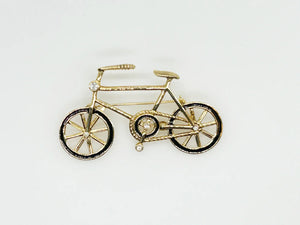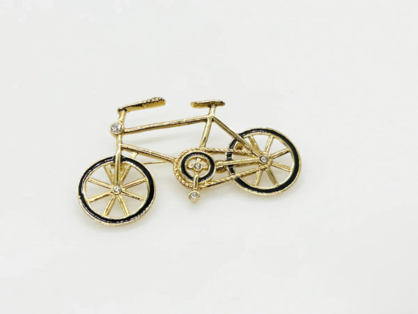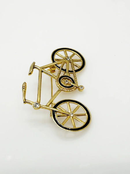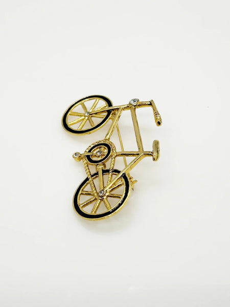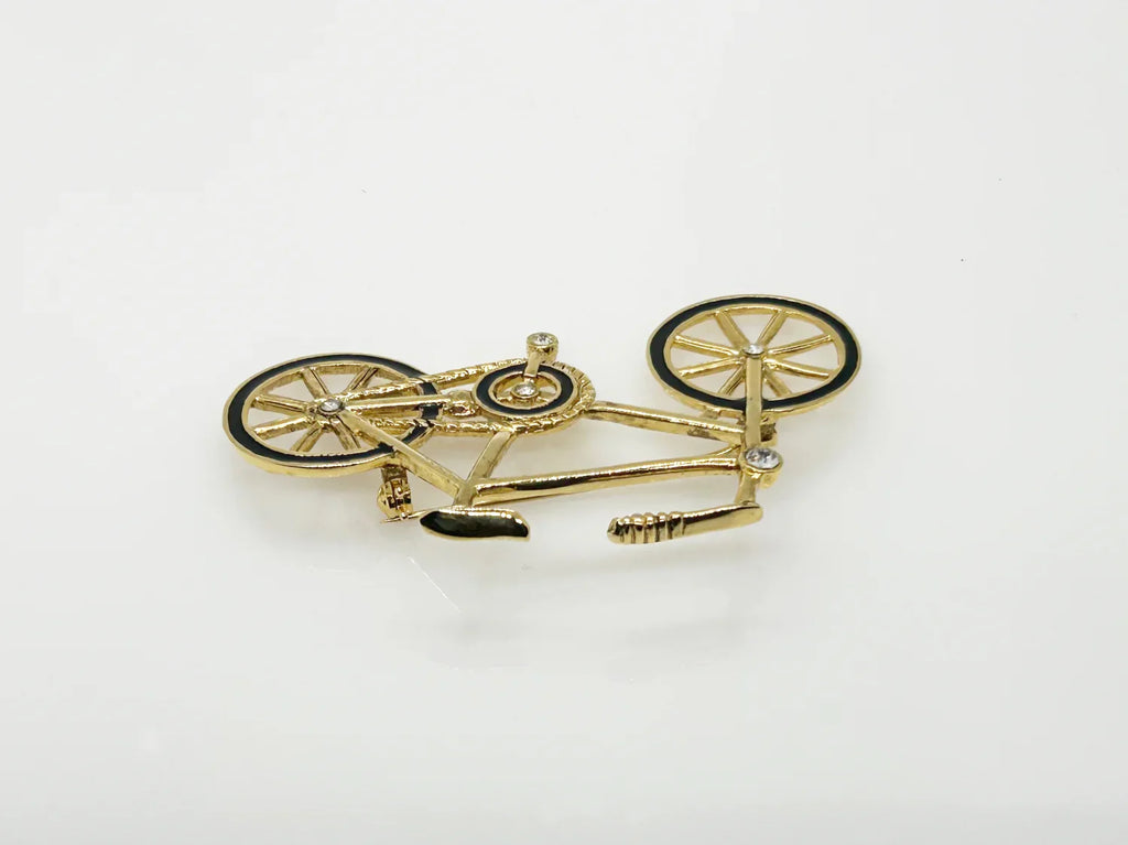 Gold and Black Bicycle Brooch with Clear Rhinestones