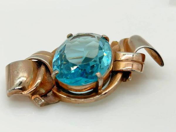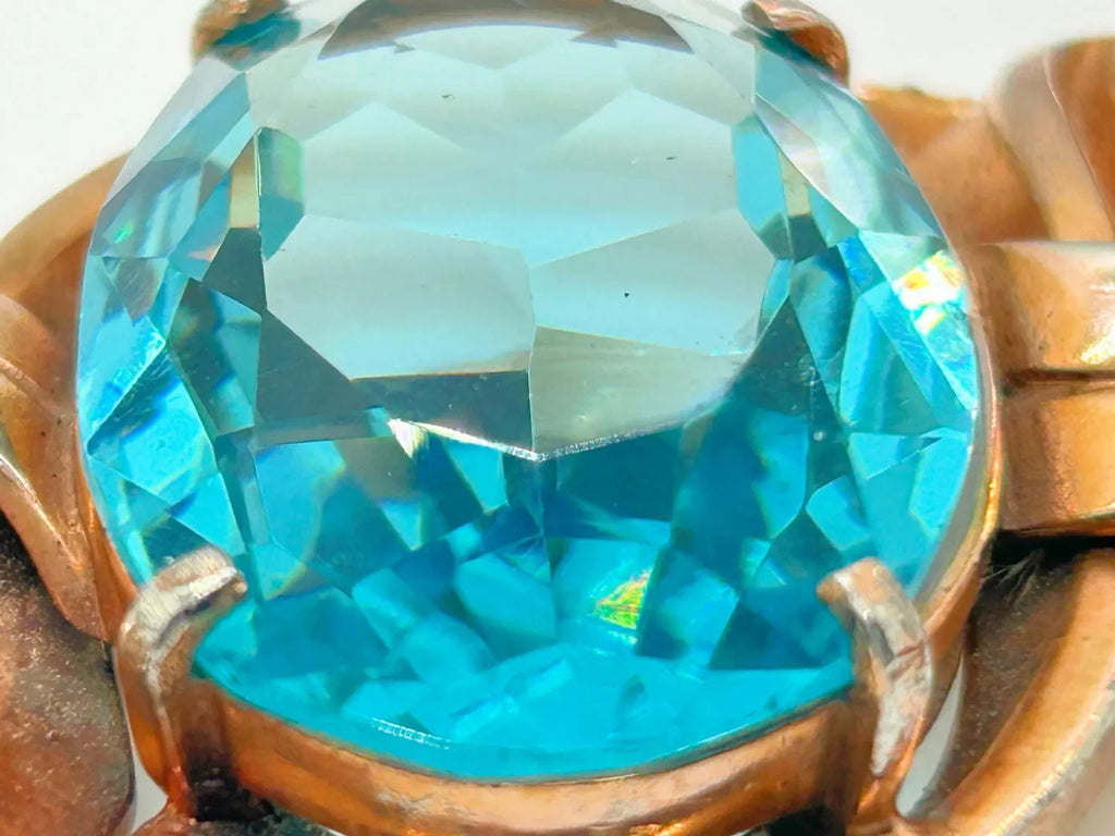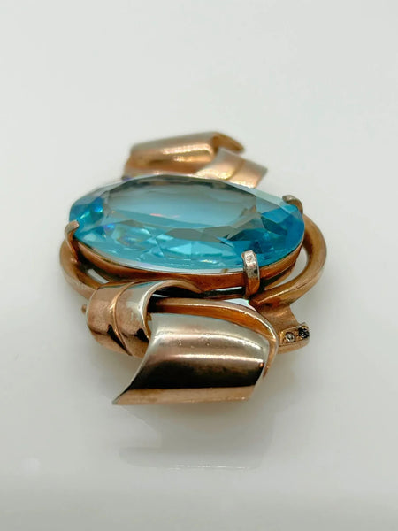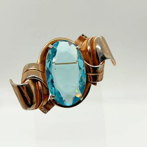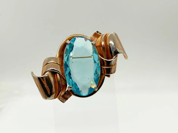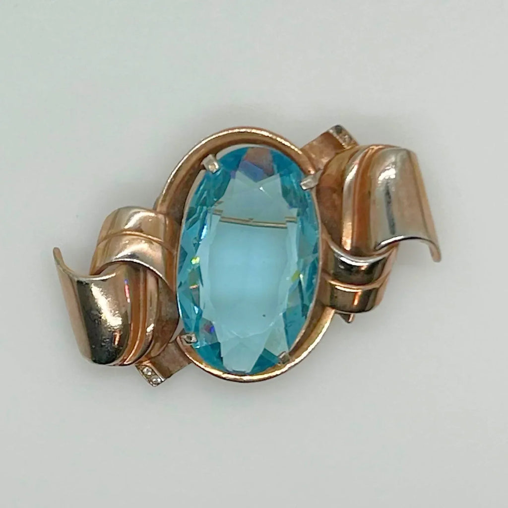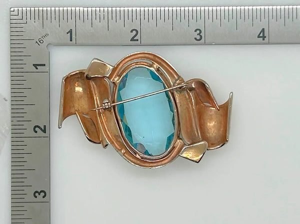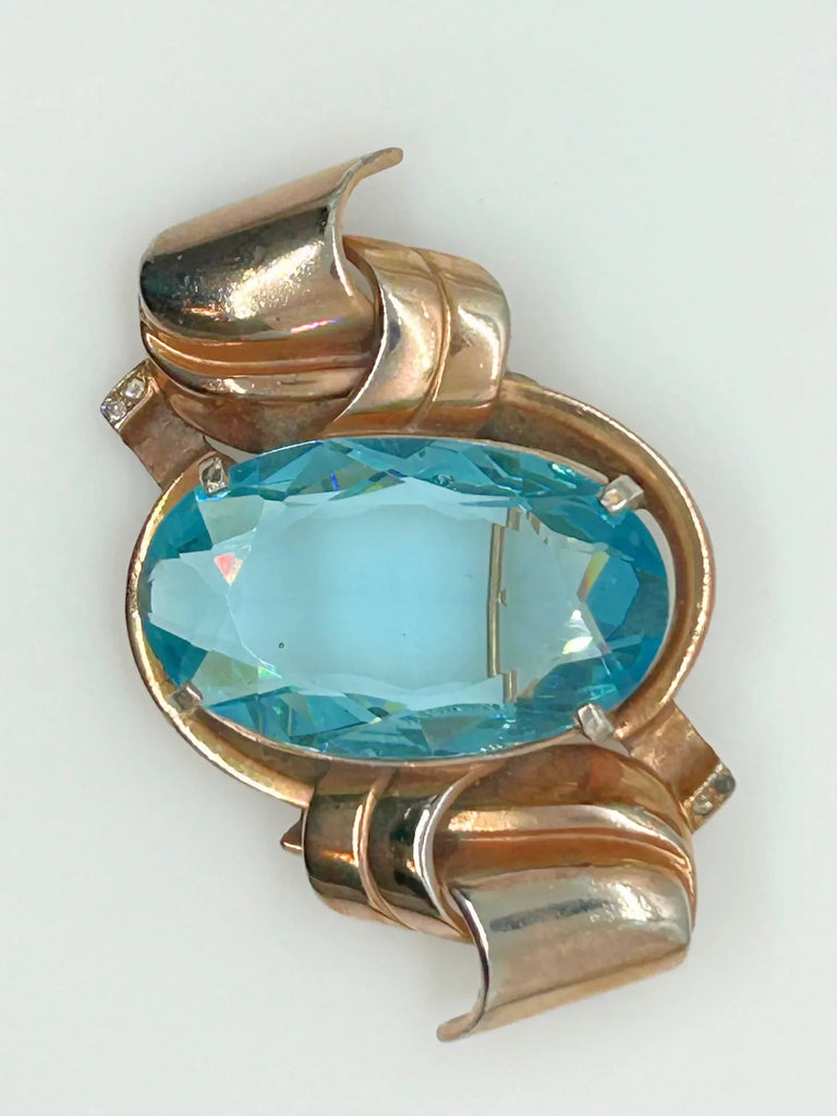 Gorgeous Vintage Brooch with Huge Oval Clear Aqua Stone