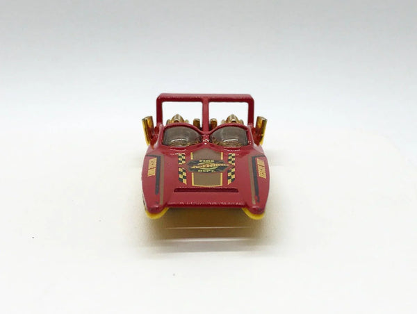 Hot Wheels Rescue, based on a boat and was designed by Larry Wood. It is red with yellow and black checkers on sides and top, 'Rescue Unit' on top in white, "fire Dept" in white on a black circle. Yellow Plastic base, and tinted black windows. The wheels are chrome red and black. Made in Malaysia, J44. (2008 on base). Near mint.