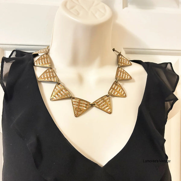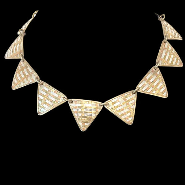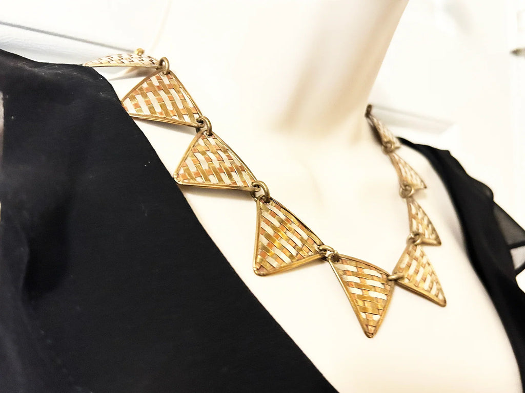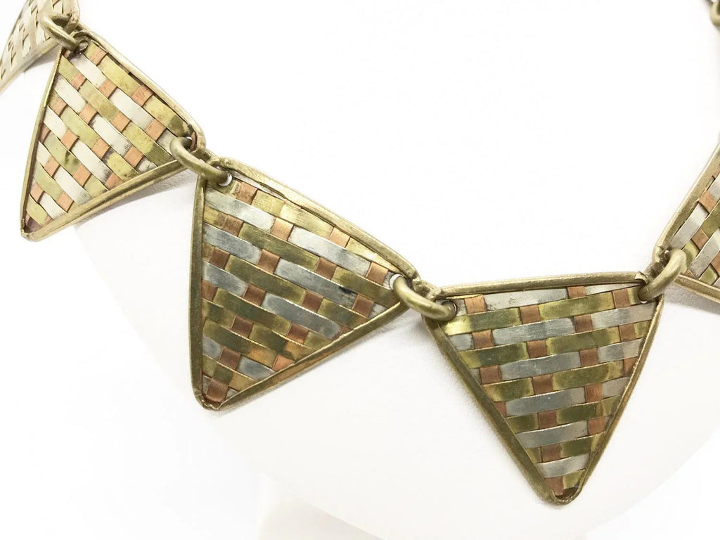 Modern Brutalist Tri-Tone Indian Geometric Metal Necklace