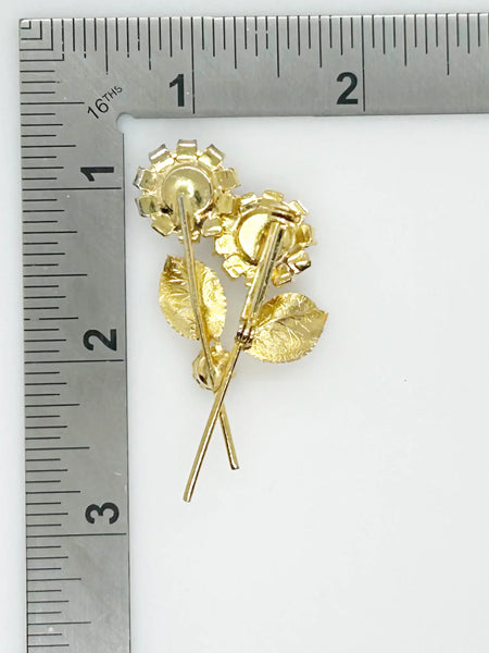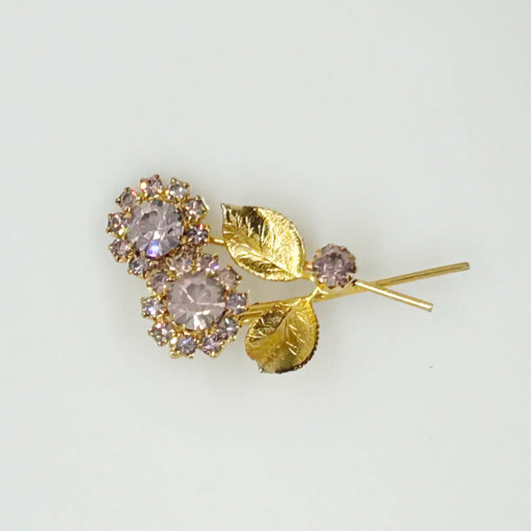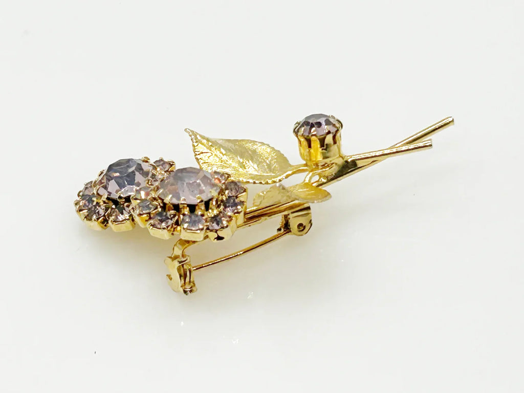 This is a wonderful lavender rhinestone floral brooch. The intricate detailing adds a touch of elegance and charm to this vintage brooch, and the soft, delicate lavender rhinestones make it a versatile accessory for any outfit. Measuring at 2 inches, it's the perfect size to add a pop of color to your ensemble while still remaining subtle. And with its excellent condition, you can enjoy this beautiful piece for years to come!