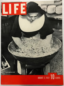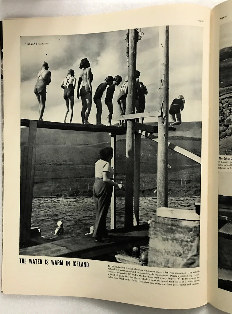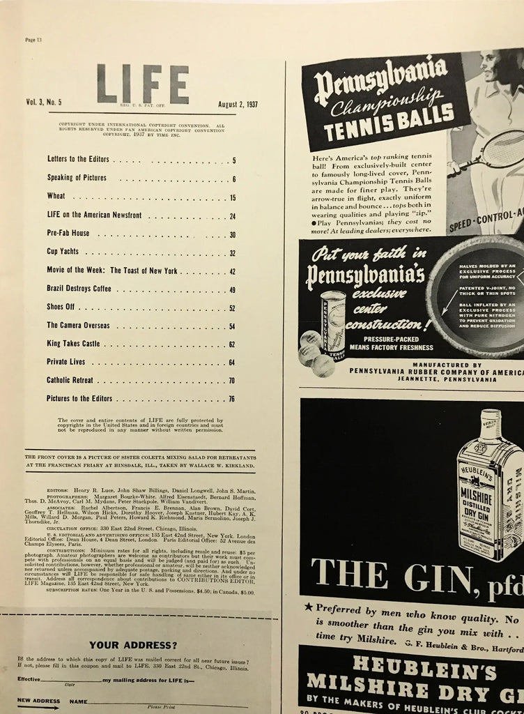 Articles include: Photo-doodles, article on film "Artists and Models", movie of the Week "The Toast of New York"; wheat farming, Spiritualism, prefabricated houses, a long feature about yacht races, with beautiful color illustration of yachts through the years, picture article about the "dos and don'ts" of getting in and out of a car; cricket matches, Iceland.