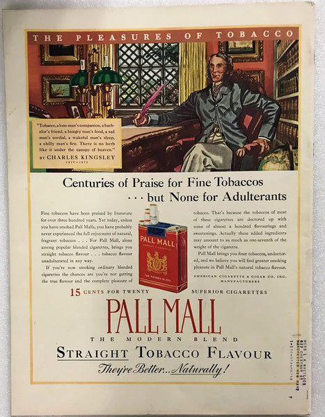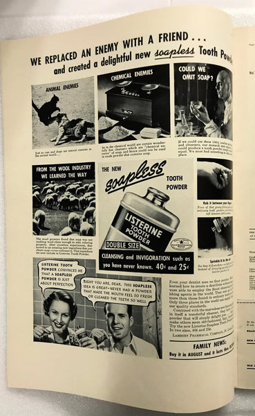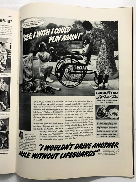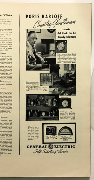 Ads include : Plymouth cars, Boris Karloff endorses General Electric clocks; Monroe Calculating Machines, questionable tire ad involving wheelchair bound child; Chrysler cars, Cine 8 Univex home movie camera. 80 pages