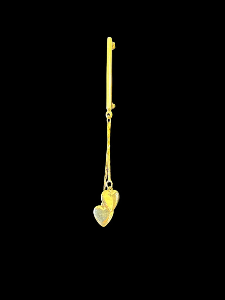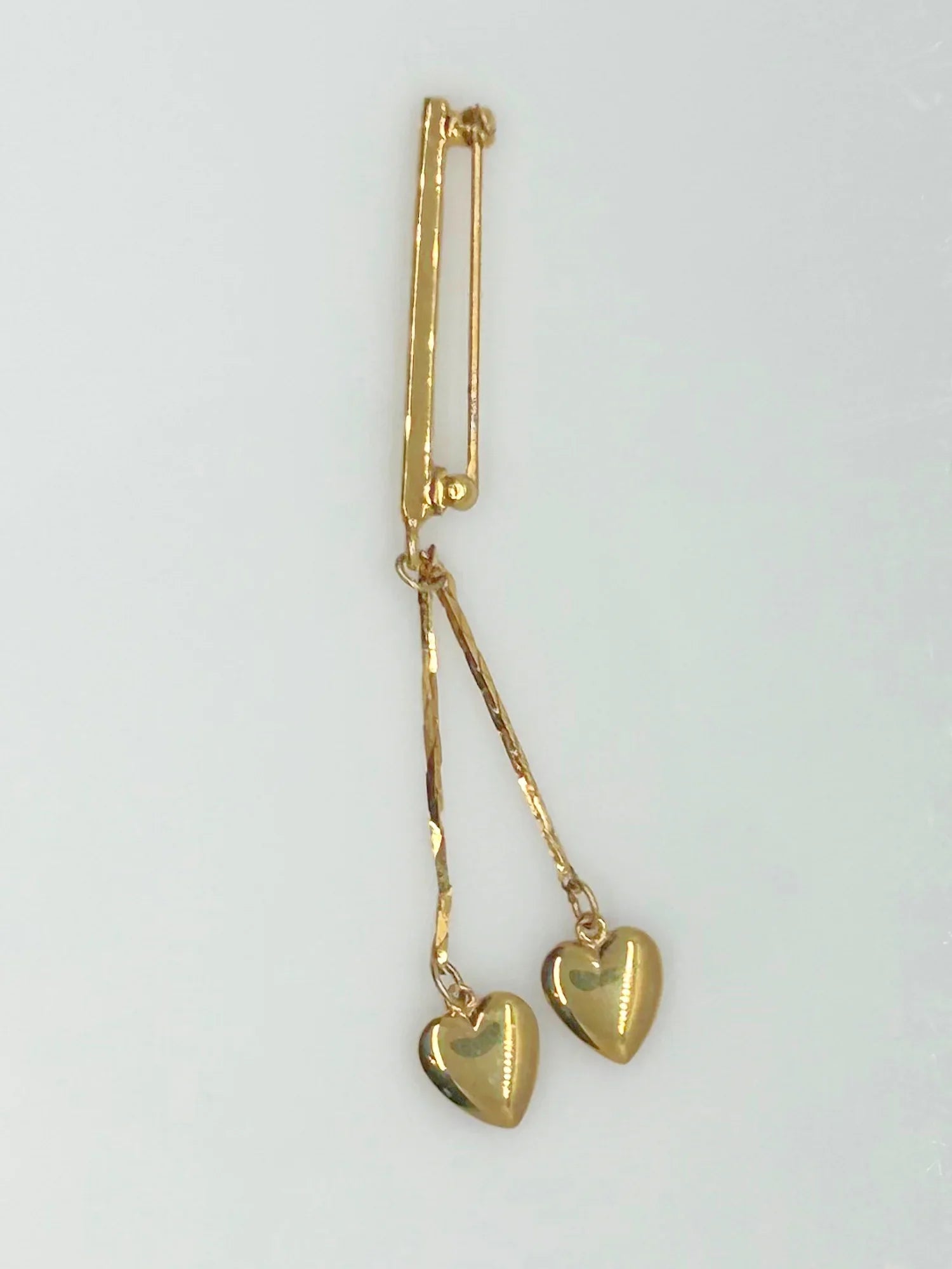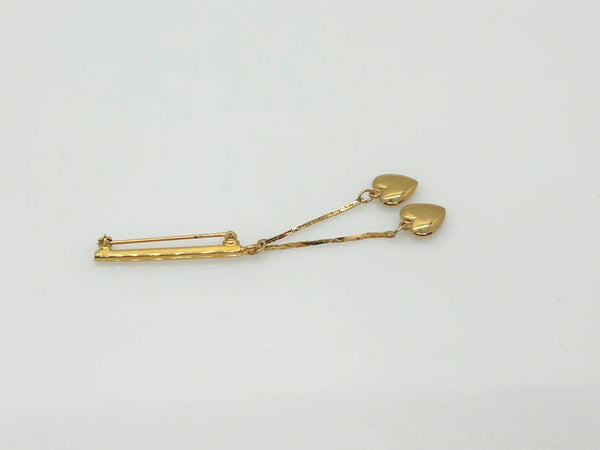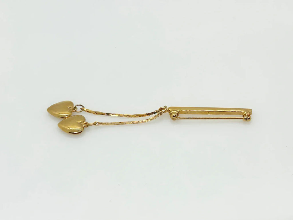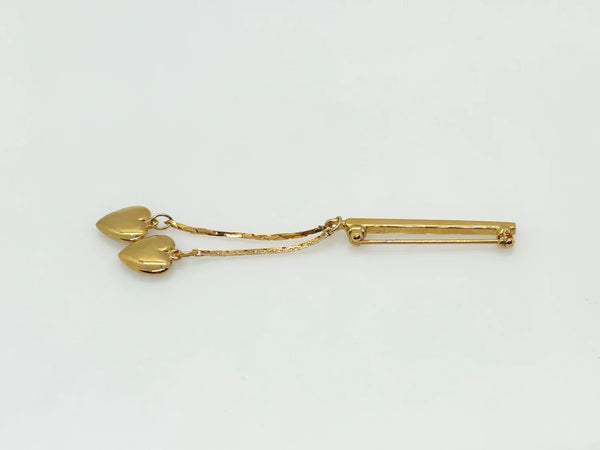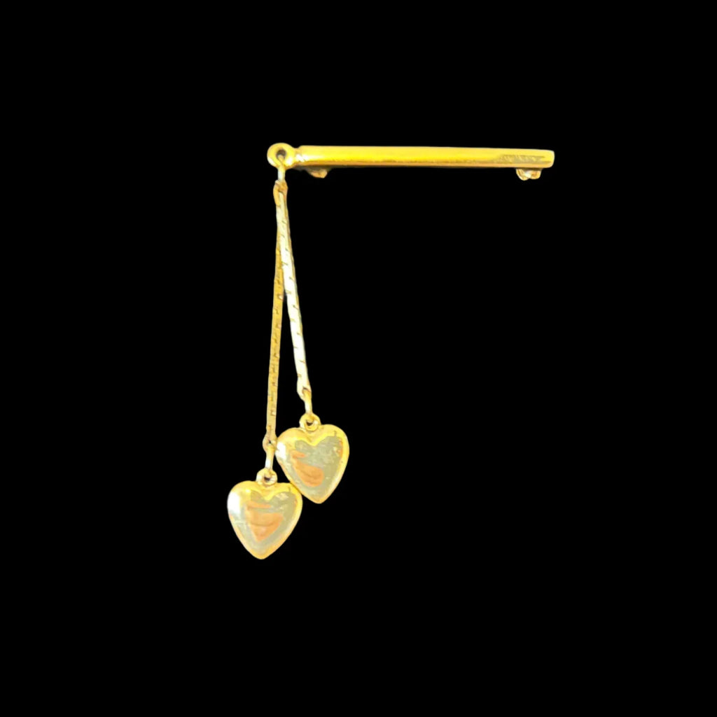 Featuring two delicately puffed hearts suspended from a sleek bar pin, this vintage Napier brooch measures 1.25" across, with the hearts gracefully dangling at lengths of 1.75" and 2". Crafted with attention to detail, it bears the distinguished Napier signature in uppercase letters, ensuring authenticity and quality. Perfect for adding a refined vintage touch to any ensemble, this pin is a sophisticated statement of enduring style.