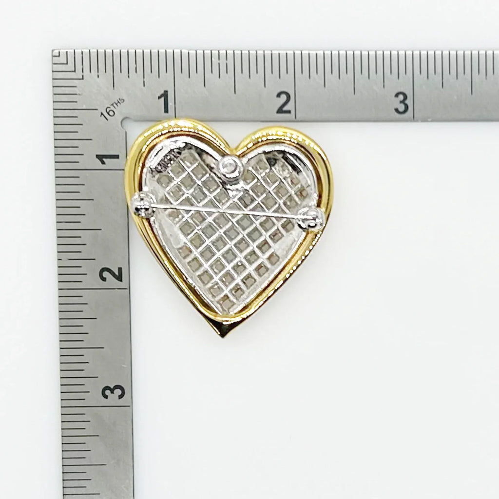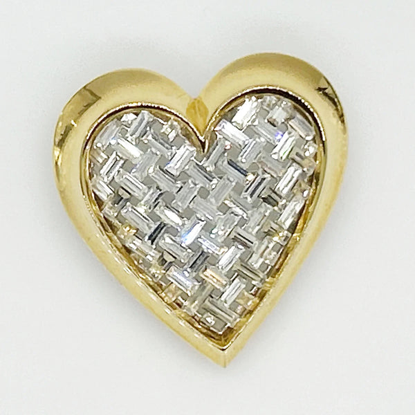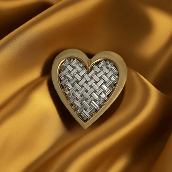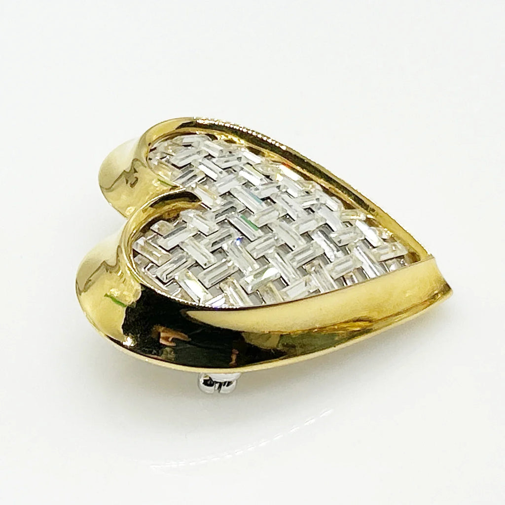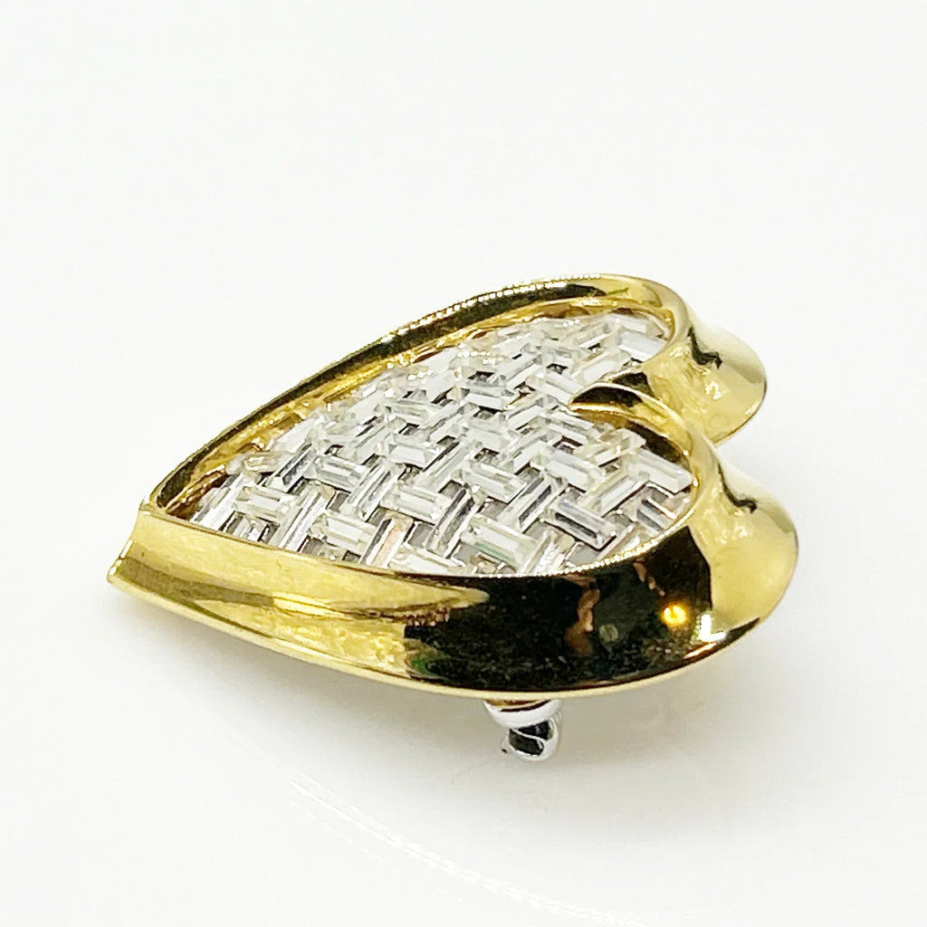 Dramatic Nolan Miller Sparkling Baguette Woven Look Heart Brooch (1990s)