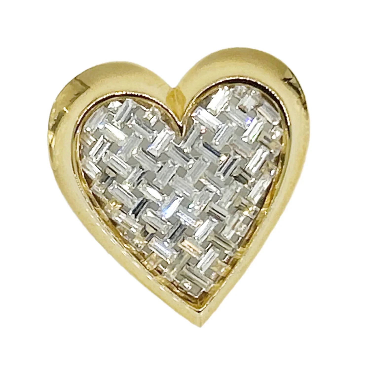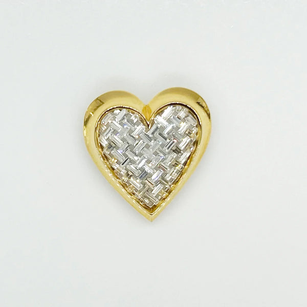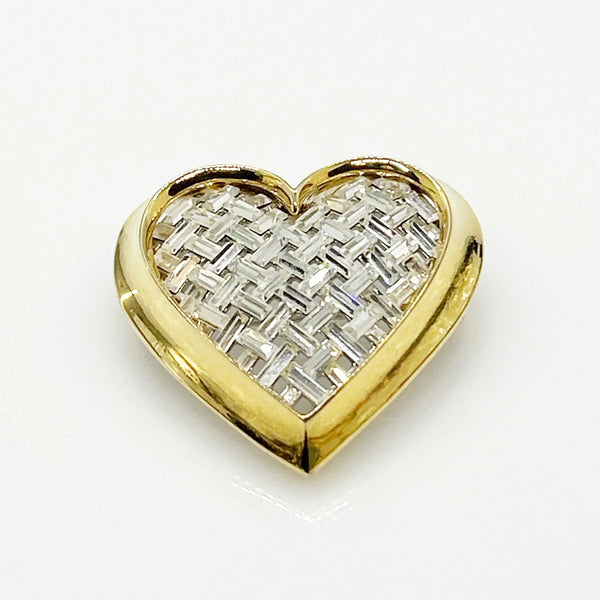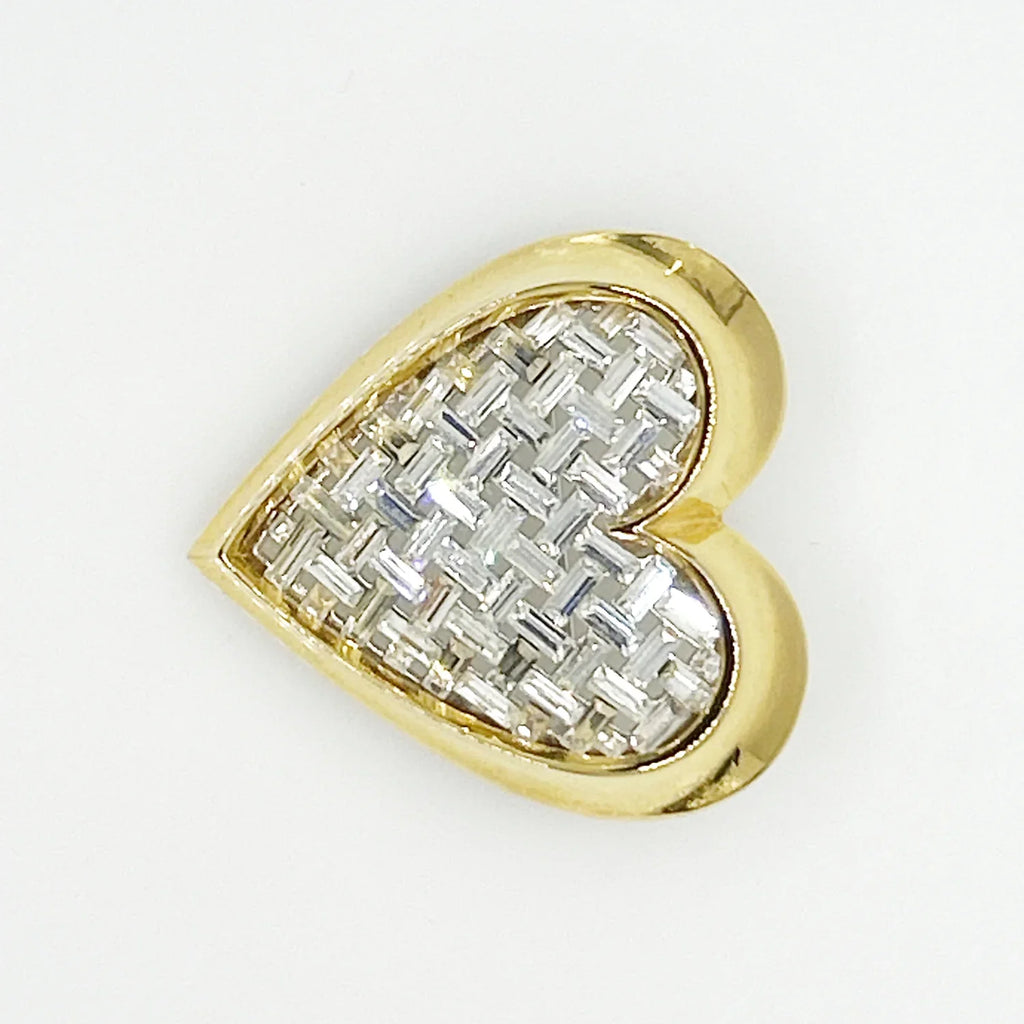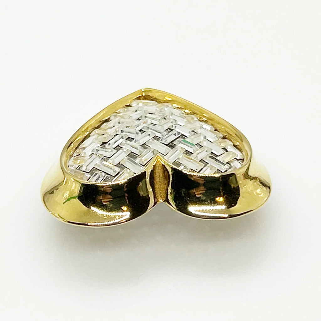 Dramatic Nolan Miller Sparkling Baguette Woven Look Heart Brooch (1990s)