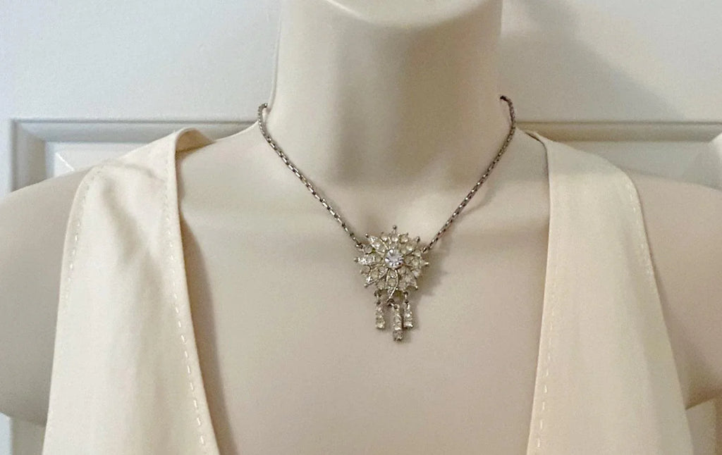 Old World Charm Vintage Rhinestone Necklace Necklace with Drops
