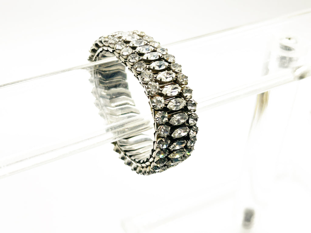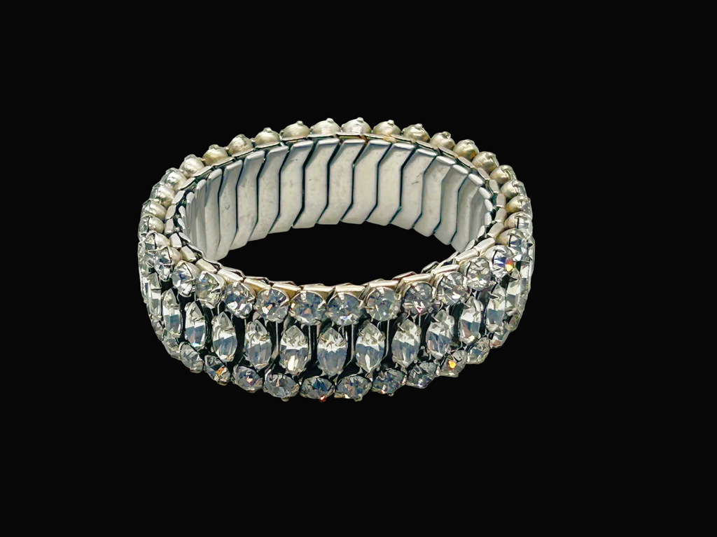 From the delicate sparkle of each rhinestone to the reliable stretch of the expansion band, every detail offers quality and style. This bracelet is not only a statement of fashion but also of craftsmanship that stands the test of time. The combination of mid-century design with modern comfort makes it an essential vintage jewelry piece.
