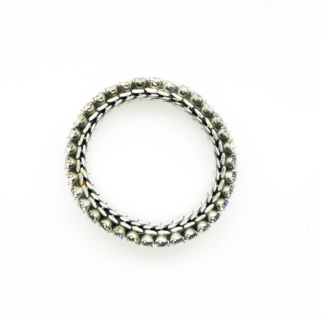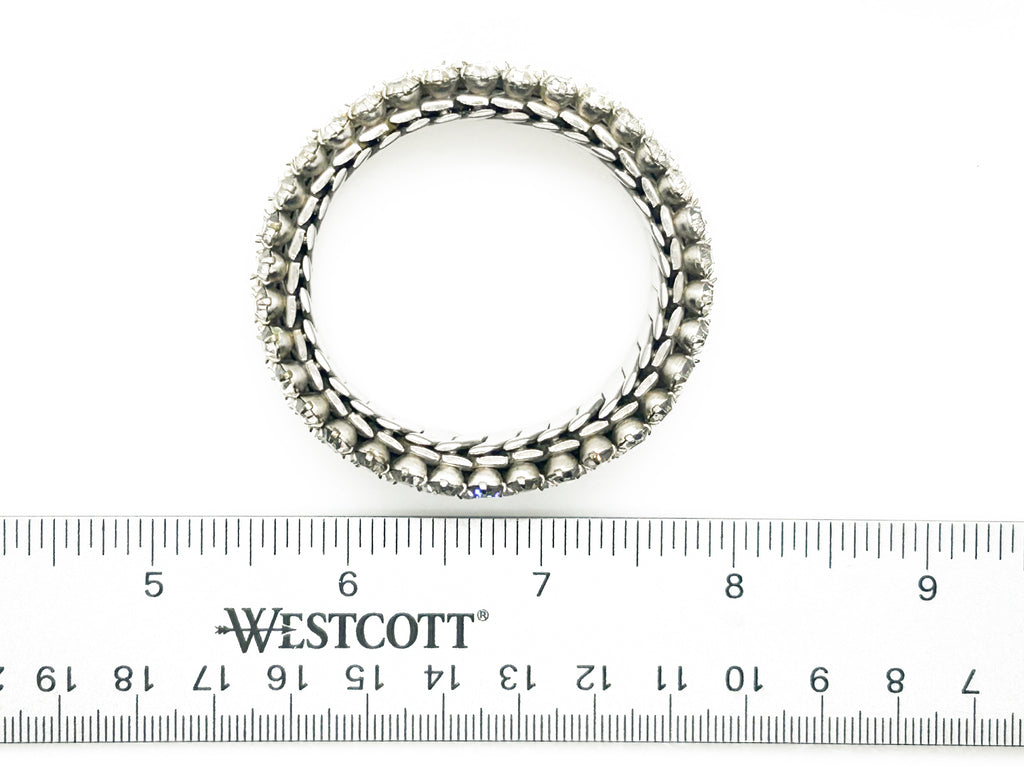 Embrace vintage elegance with this exquisite rhinestone bracelet. The design ensures you enjoy wearing this piece for many years. It is approximately .75" tall and expands to fit most wrists. it feels like luxury and quality, assuring you years of enjoyment.