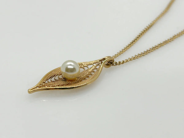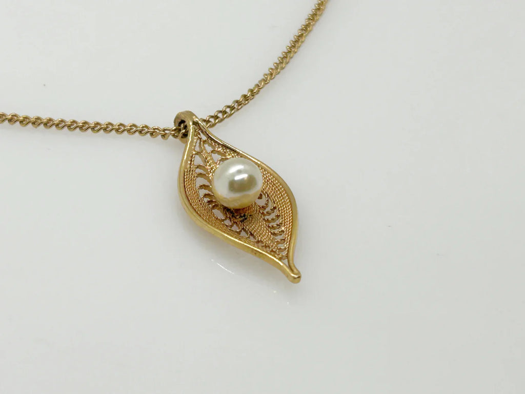 Vintage Sarah Coventry "Serene" Faux Pearl and Filigree Pendant with Chain