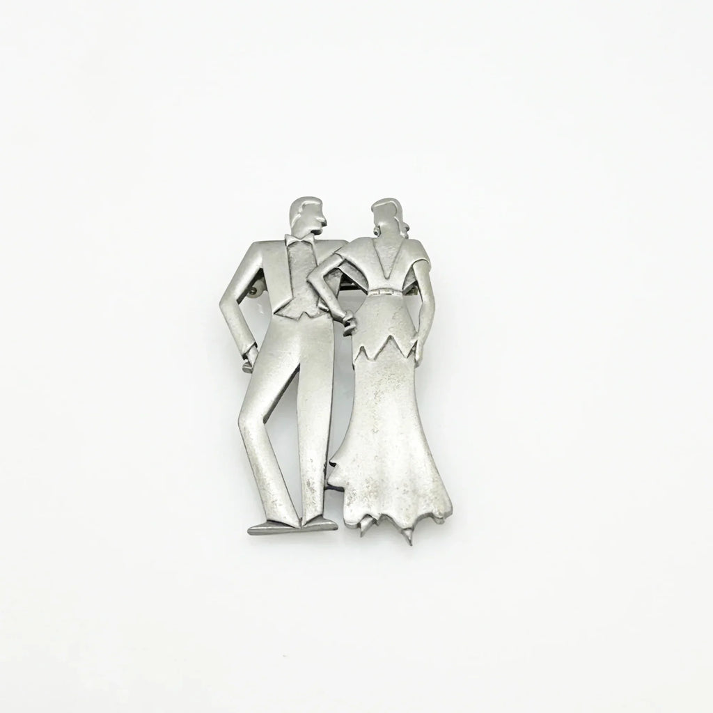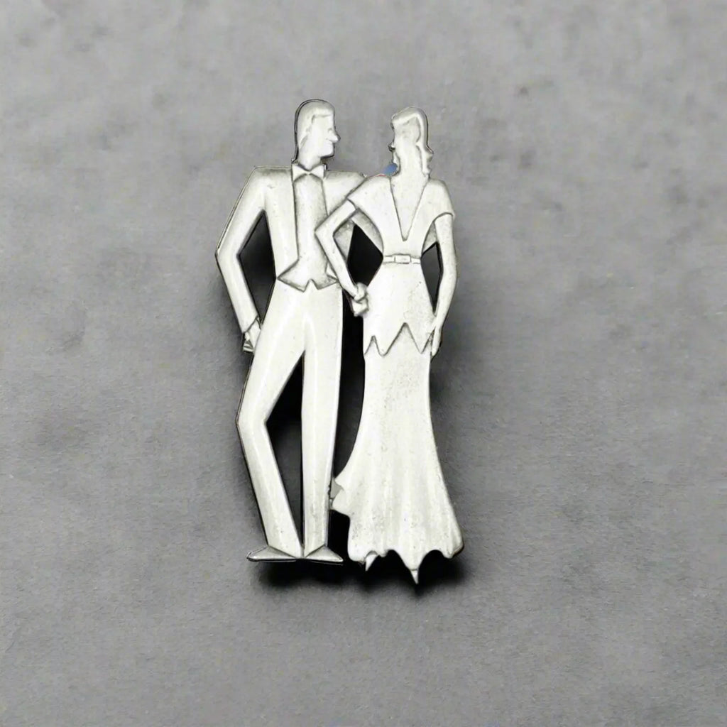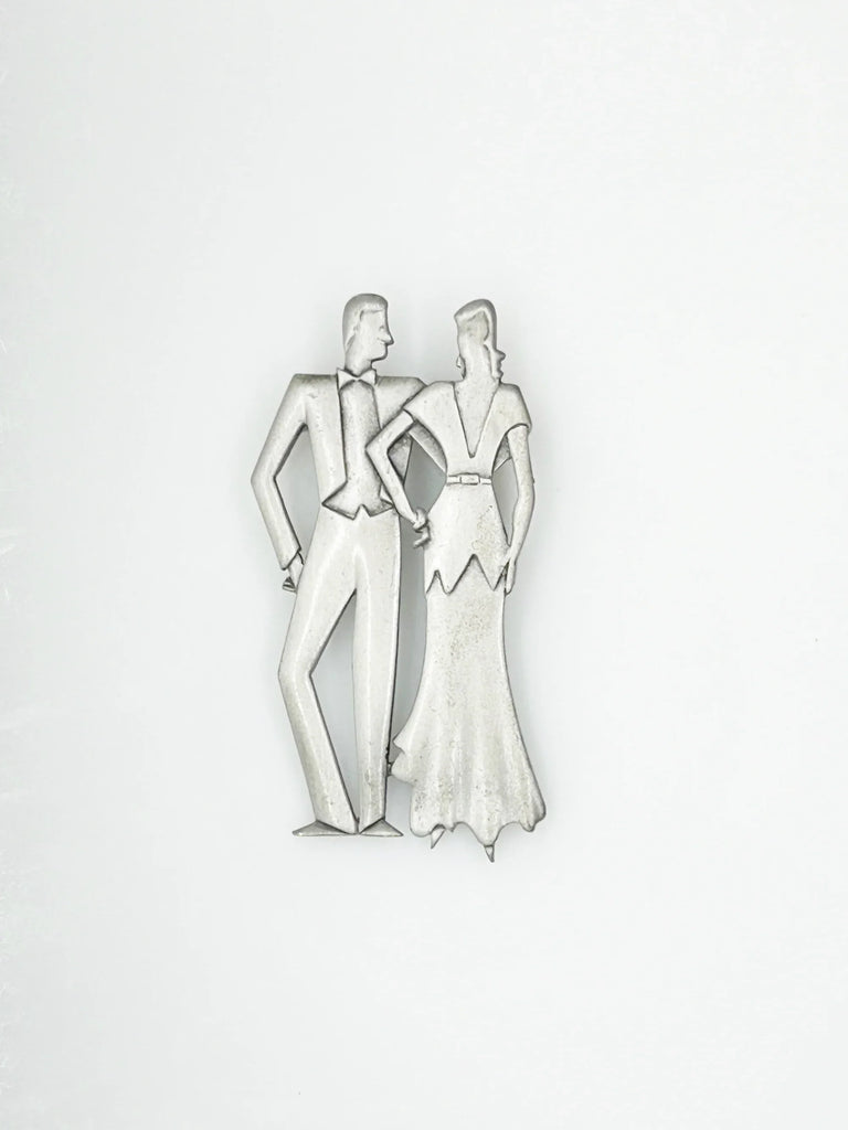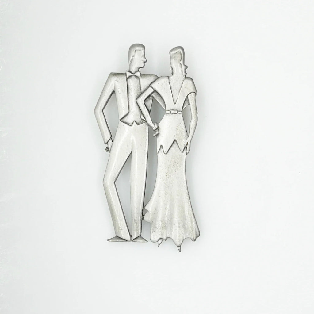 Signed JJ 1988 Art Deco Style Formal Dressed Couple Brooch