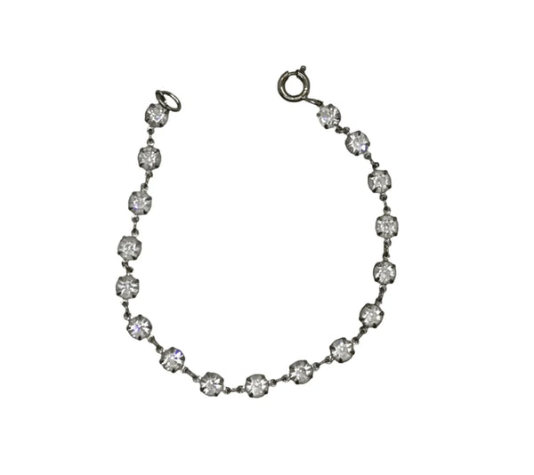 Indulge in the timeless elegance of our exquisite Classic Vintage Crystal Bracelet. Handcrafted with faceted crystals, this stunning piece measures 6 3/4" and is in impeccable vintage condition. It will add a subtle and alluring touch to any look, making it a must-have for every collector of unique jewelry.