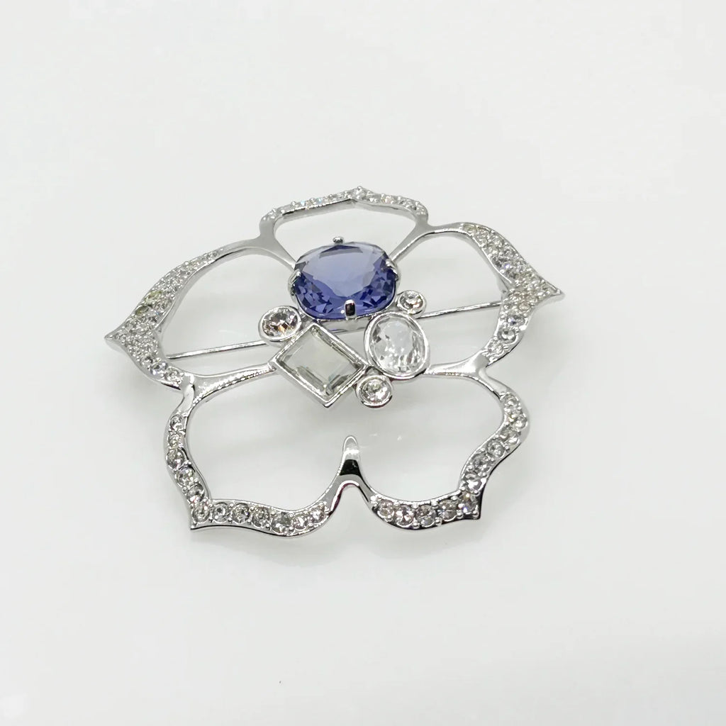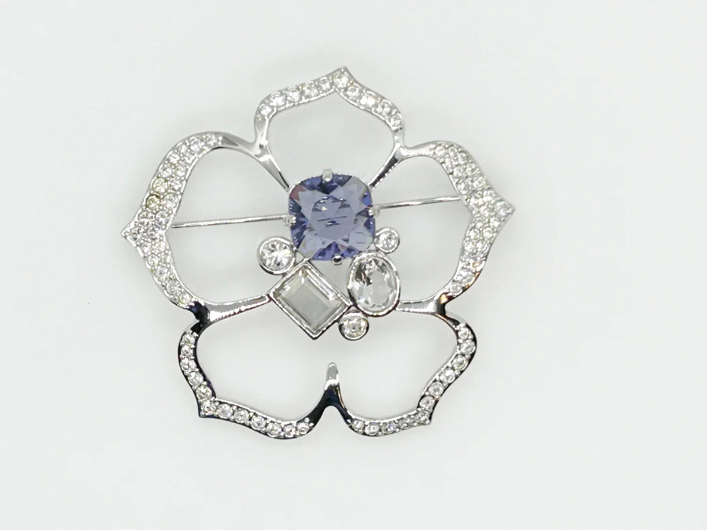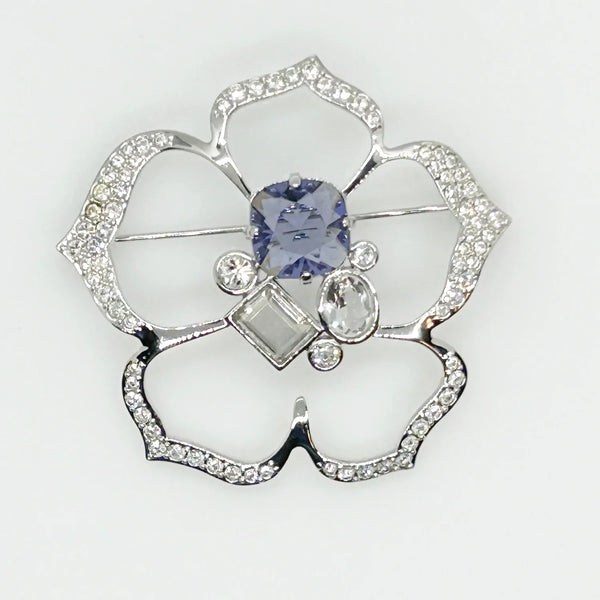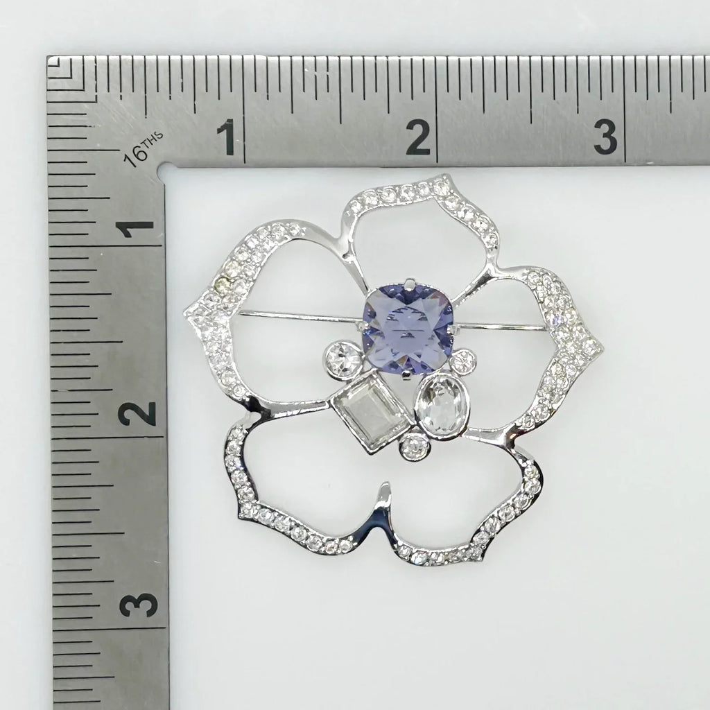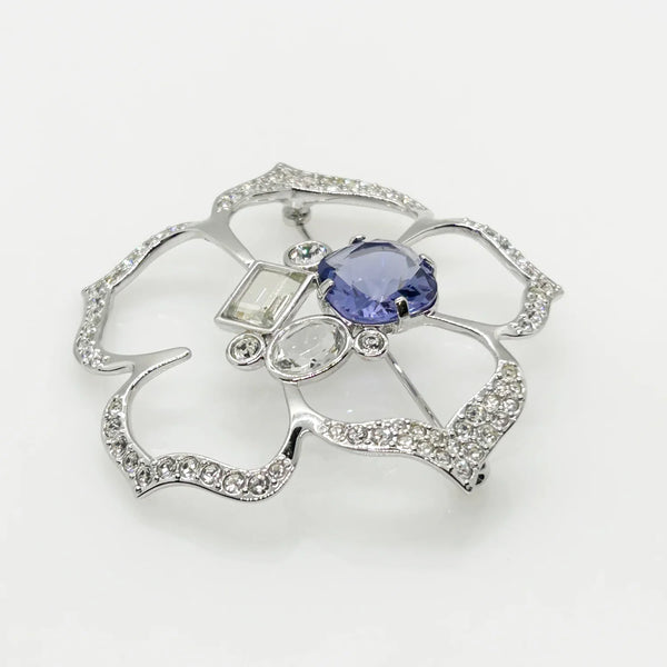 Sparkling Swarovski Flower Brooch with Lavender Center