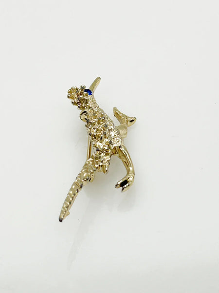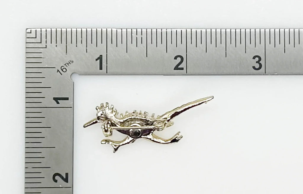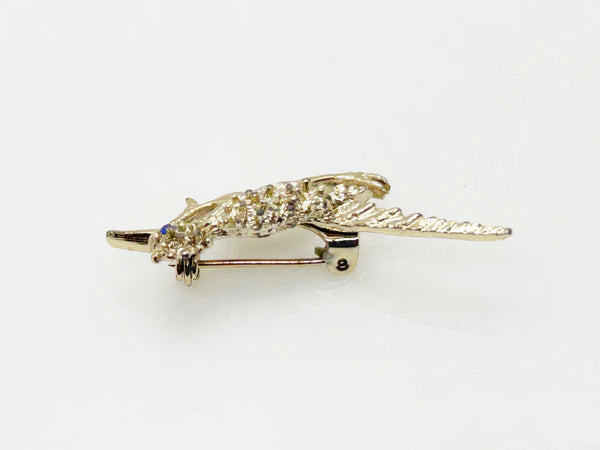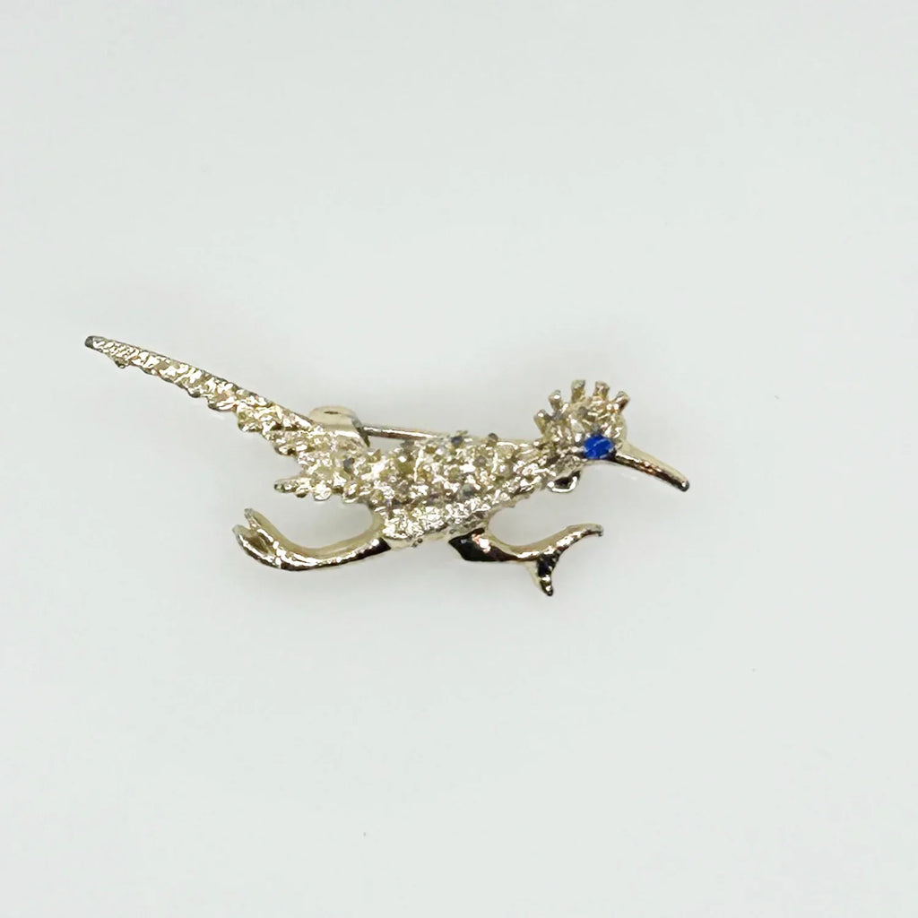 Textured Vintage Roadrunner Bird Brooch with Blue Eye