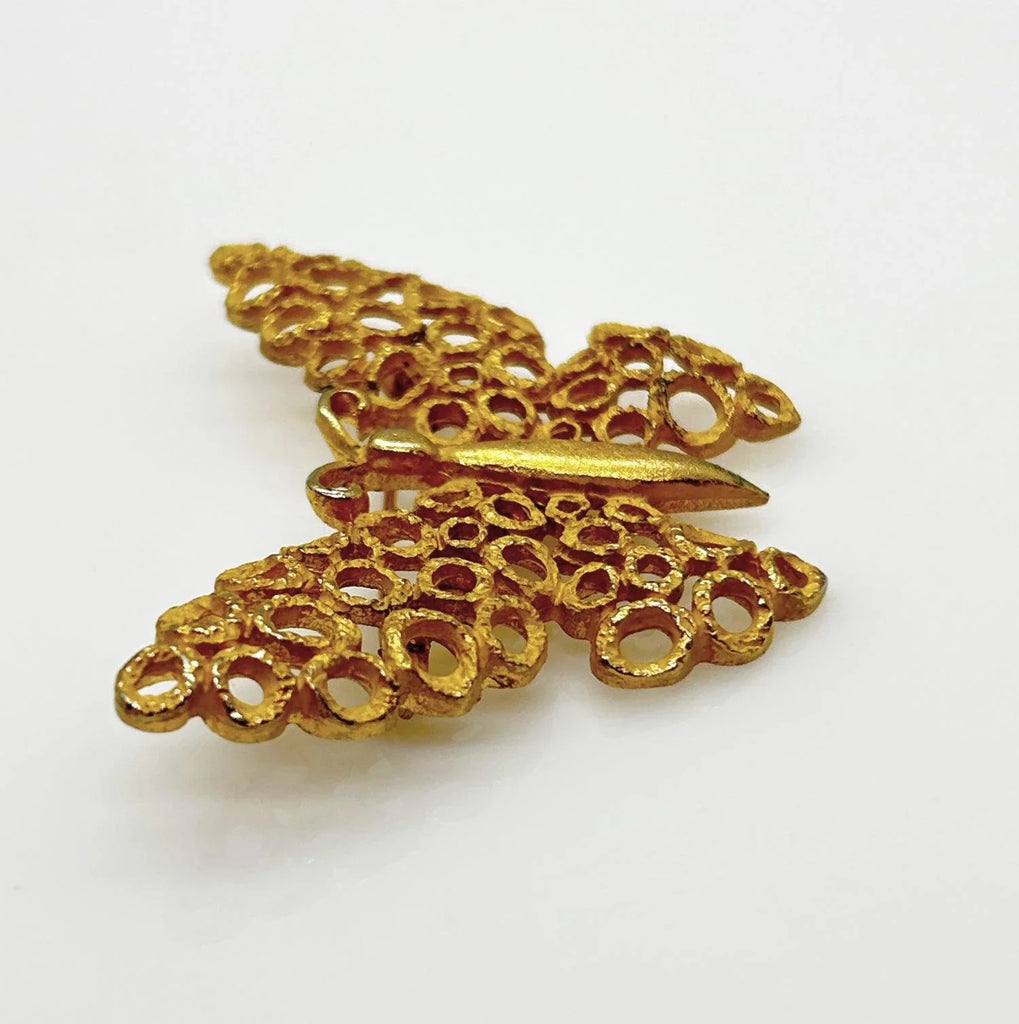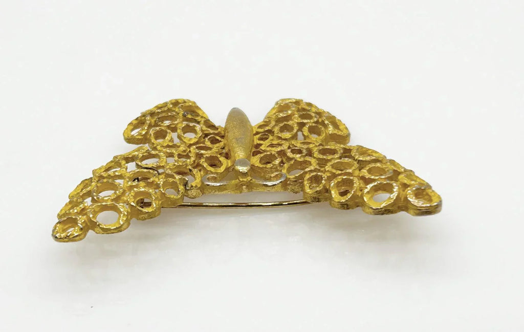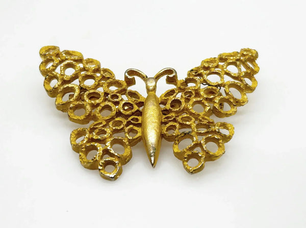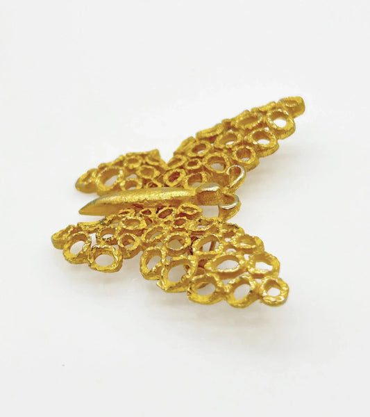 Charming Textured Golden Vintage Butterfly Brooch