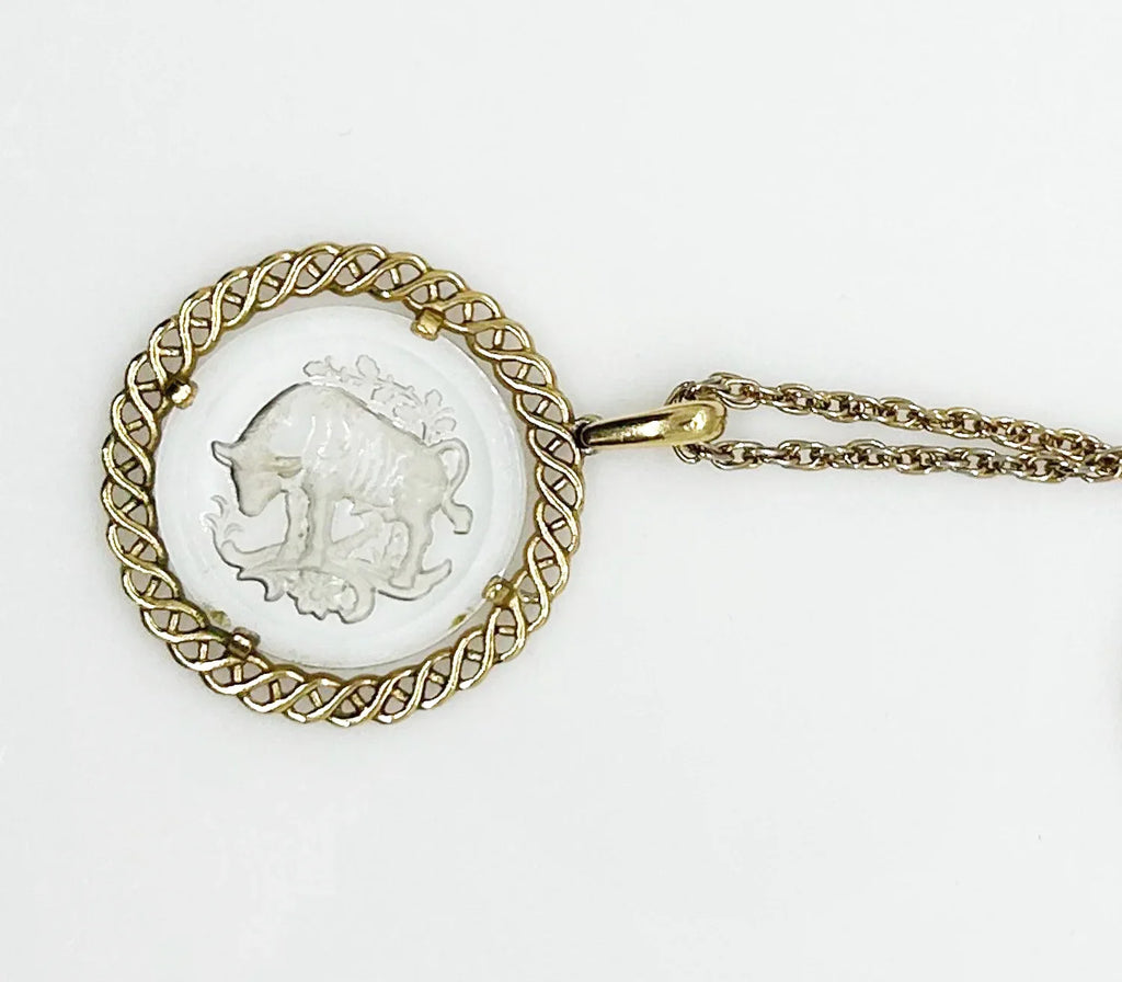 Crown Trifari Vintage Clear Taurus Pendant with Chain