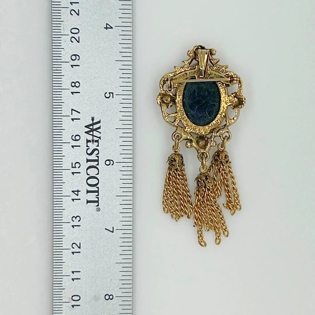 Vintage Black Mosaic and Gold Tassel Brooch/Pendant