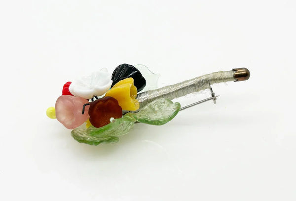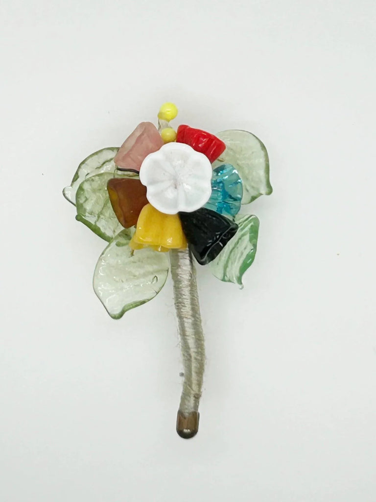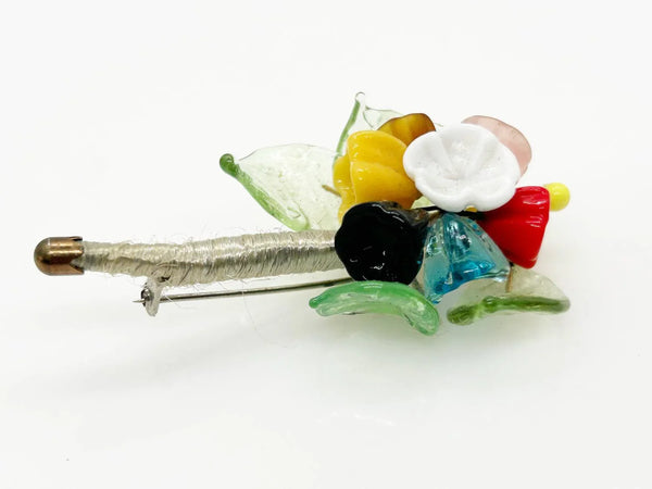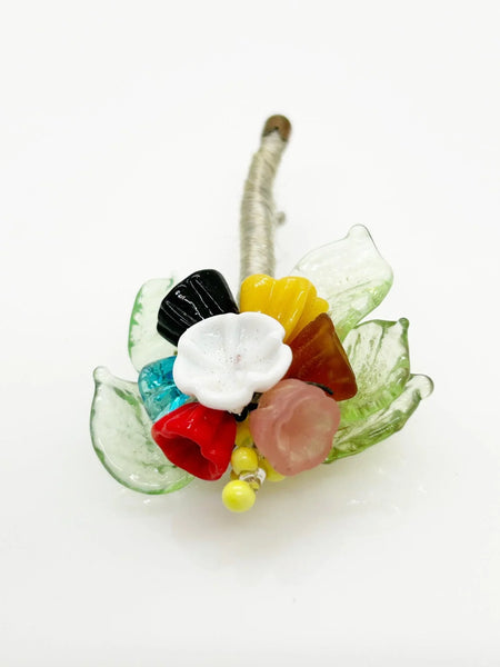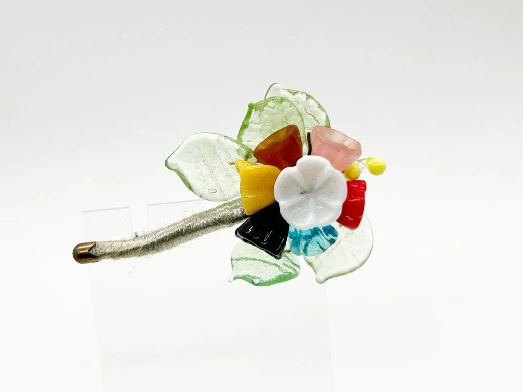 Vintage Handmade Bouquet Brooch with Colorful Glass Flowers