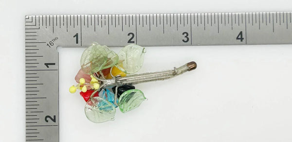 Capture attention with this vintage handmade bouquet brooch showcasing colorful glass flowers in shades of red, pink, yellow, blue, and white. Measuring 2.5" tall and secured with a classic C clasp, its fine craftsmanship and vivid hues add a distinctive touch to any outfit.Free Shipping