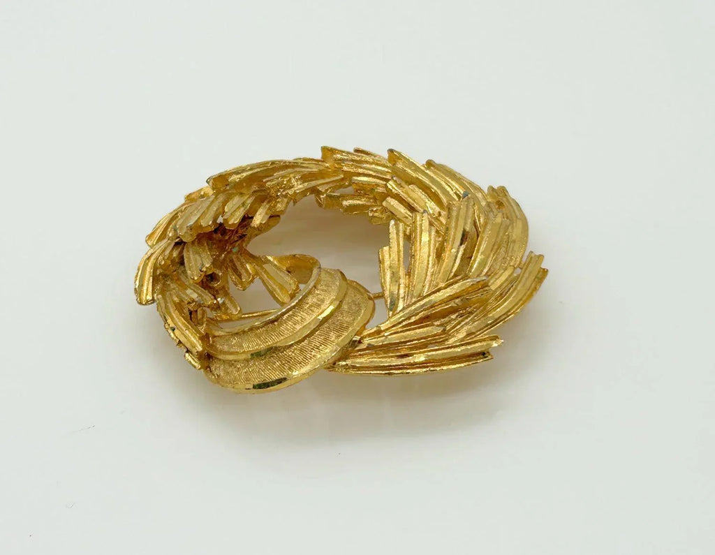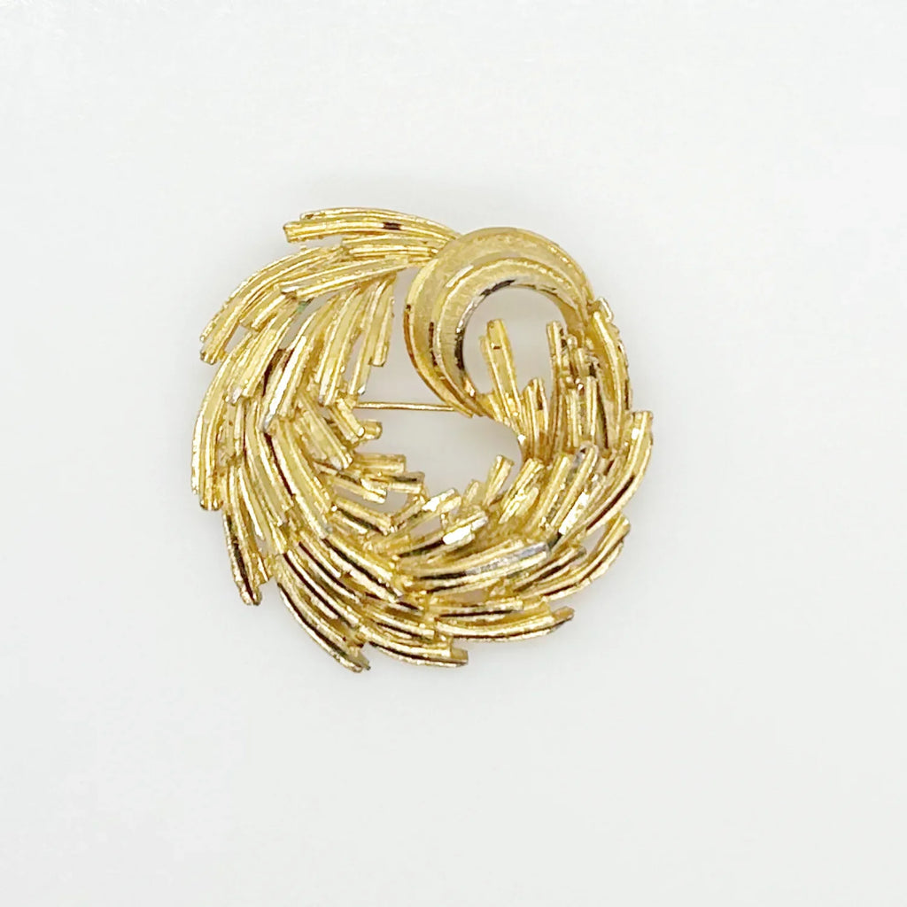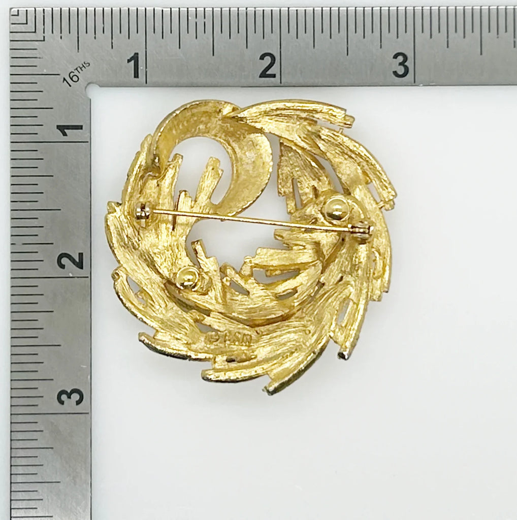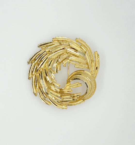 Vintage BSK Modernistic Gold Tone Swirl Brooch