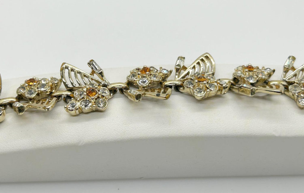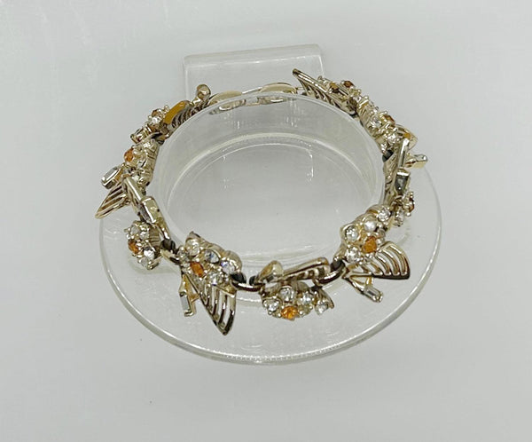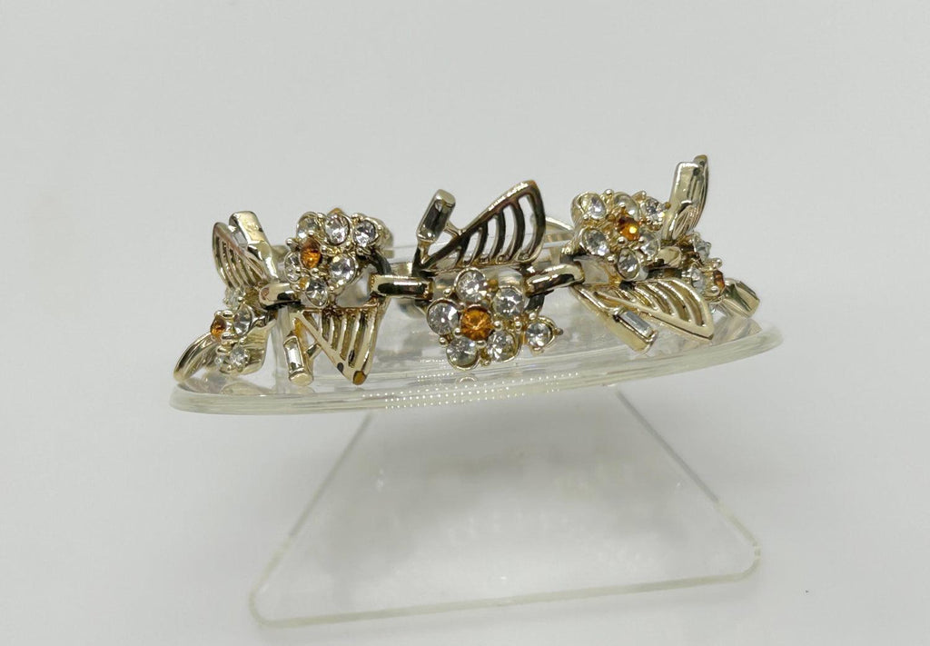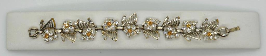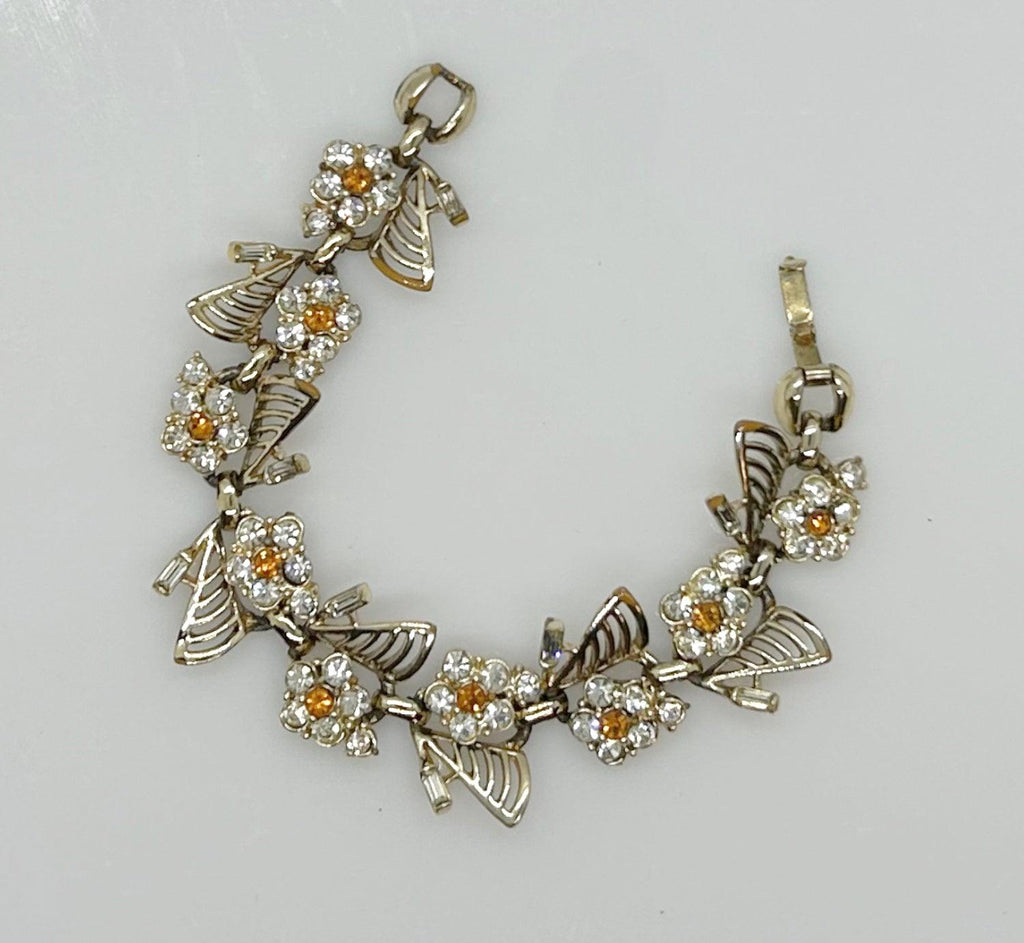 Vintage Dainty Daisy Bracelet with Bright Yellow and Clear Stones