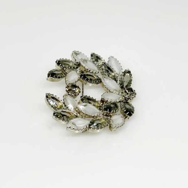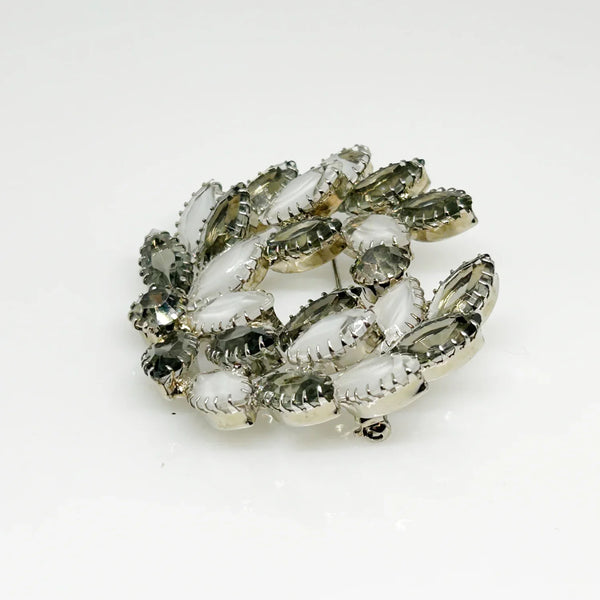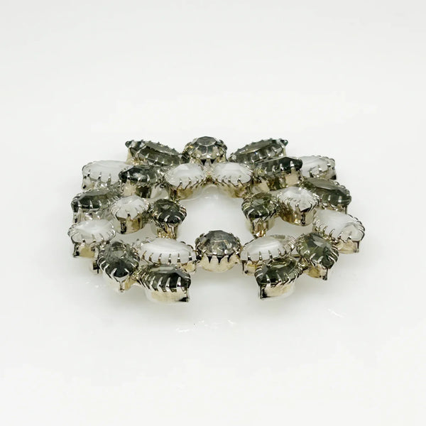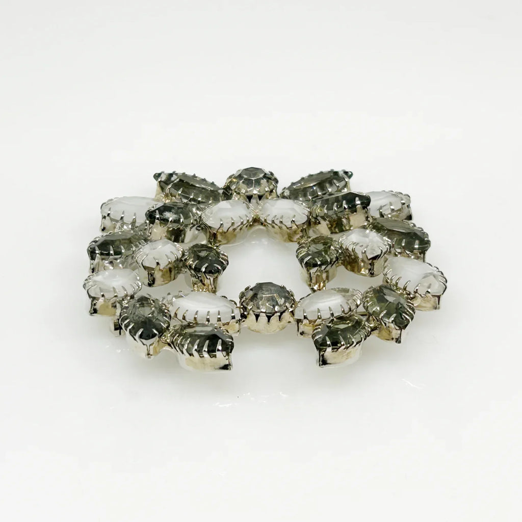 Unusual Vintage Dark Gray and Silver Sparkling Rhinestone Brooch