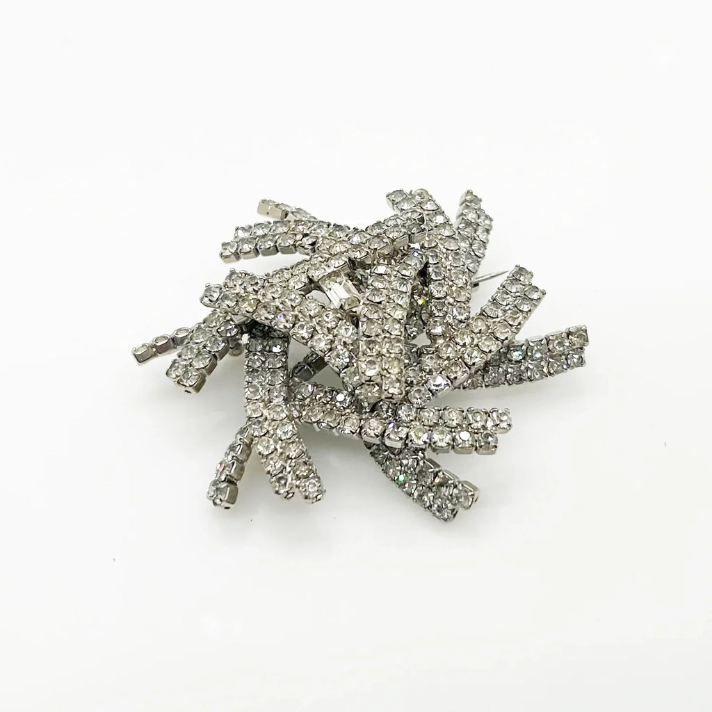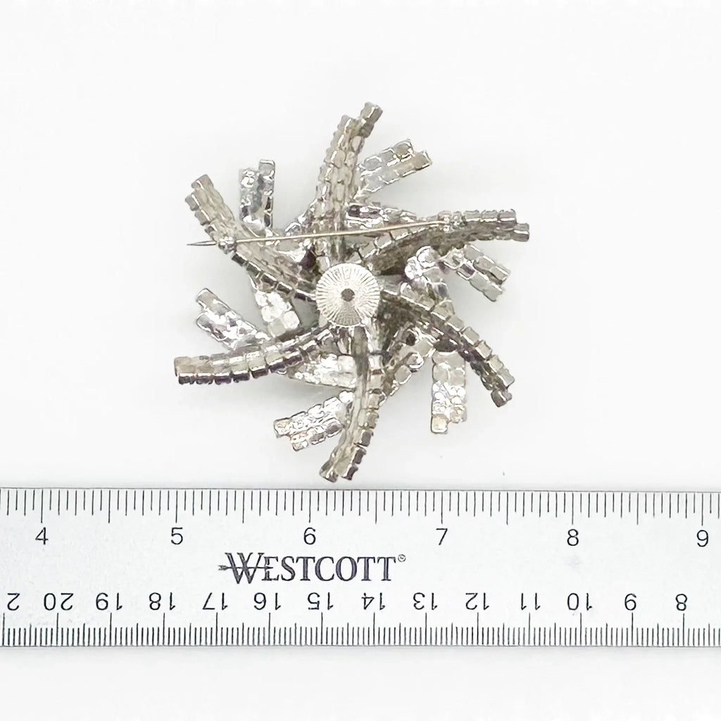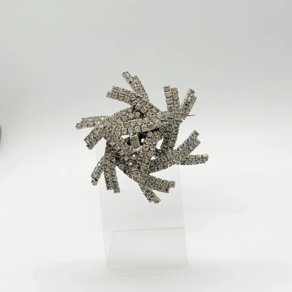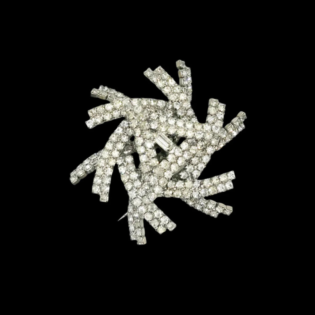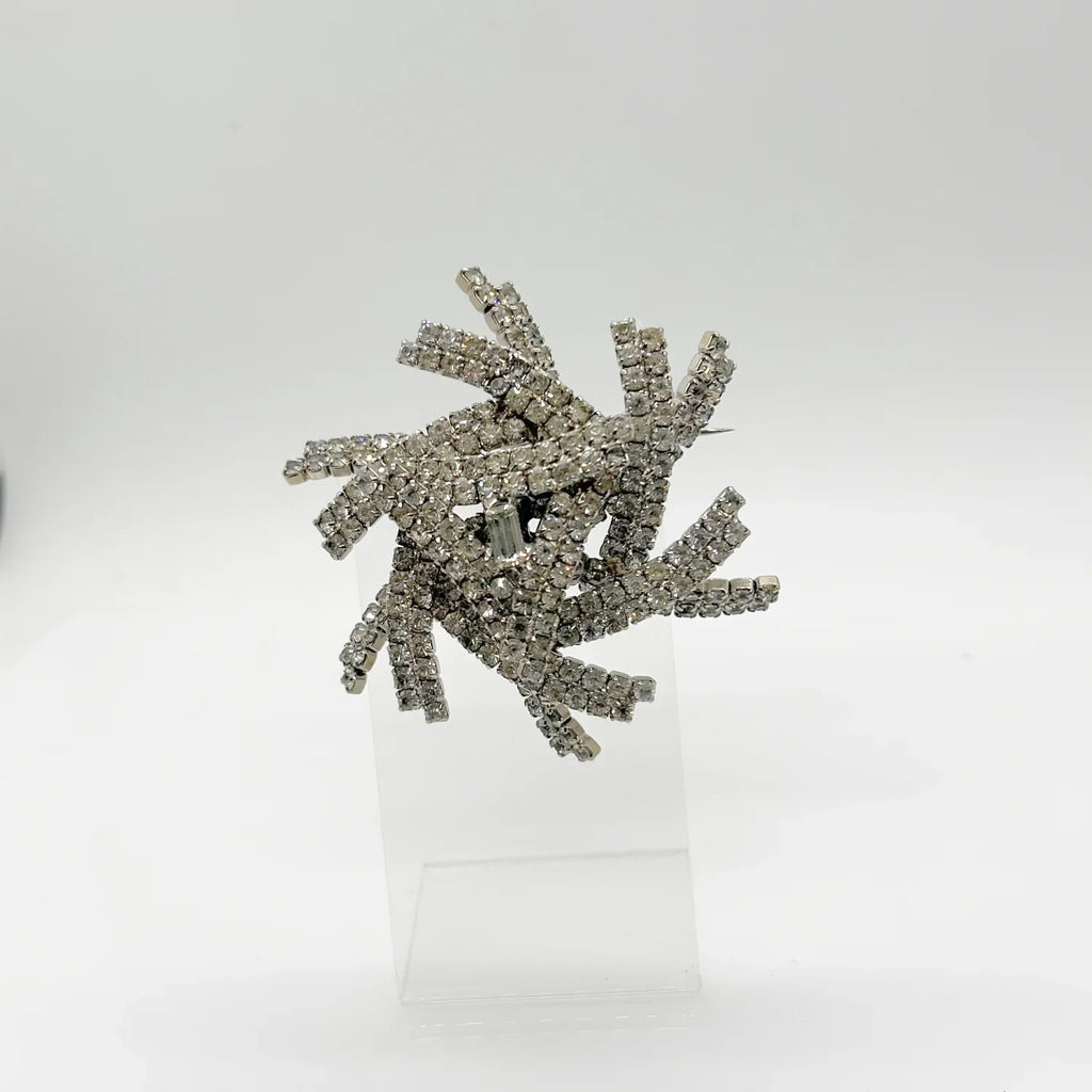 This brooch is truly a showstopper and a must-have for any jewelry lover. Its layered construction adds dimension and depth to the sparkling rhinestones, making it even more stunning in person. Measuring 3" across and rising almost 1" tall, it's a statement piece that will catch everyone's eye. Don't miss out on the opportunity to add this extraordinary brooch to your collection! Free Shipping