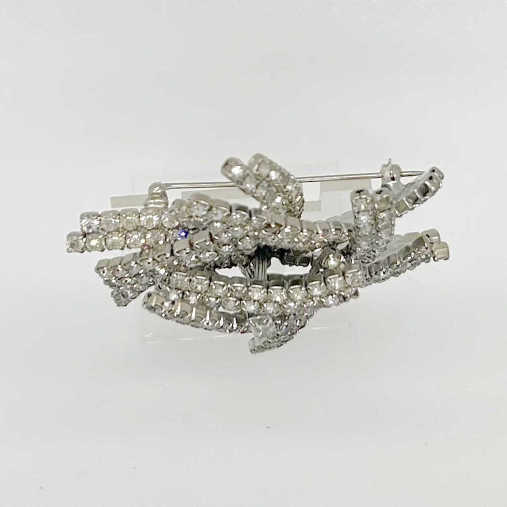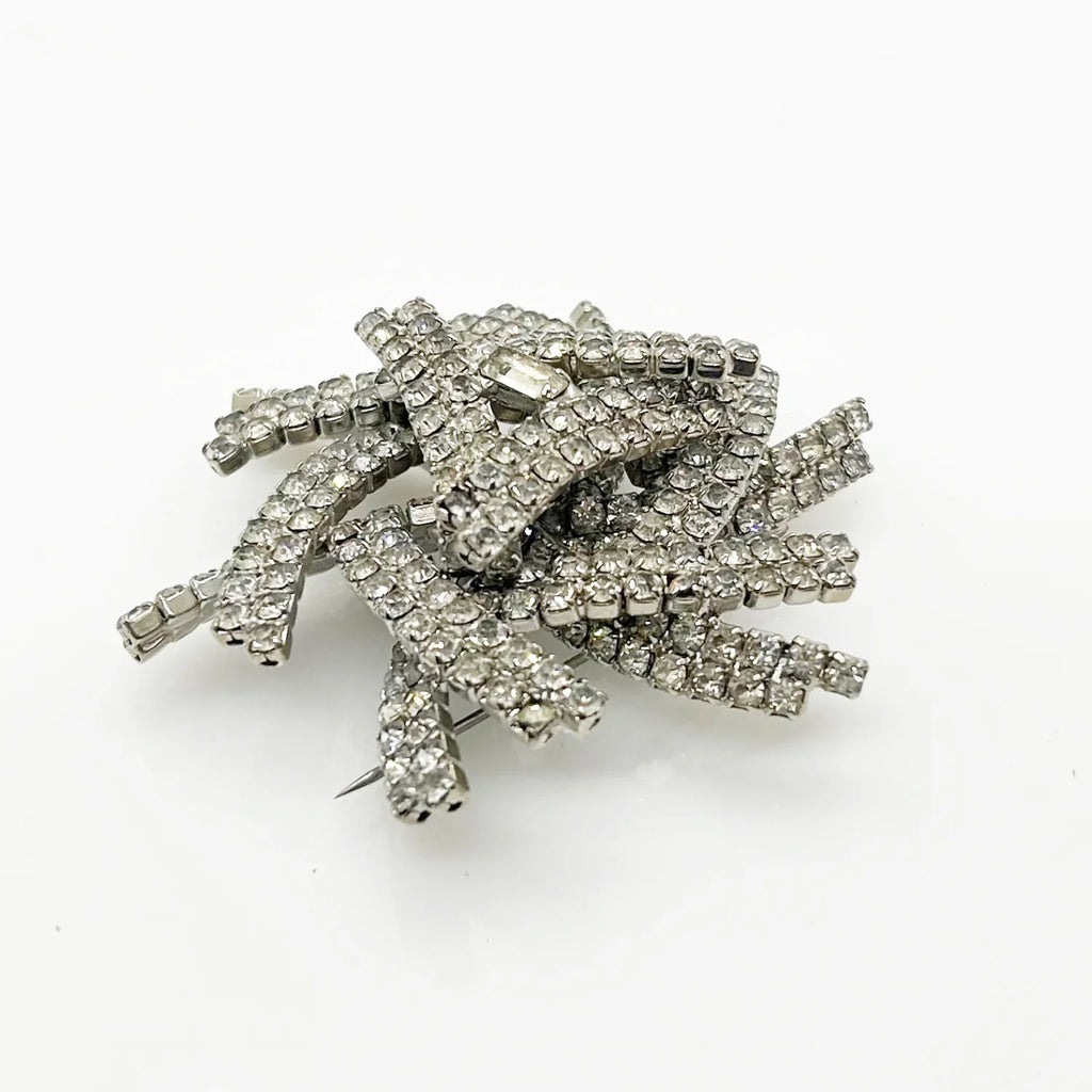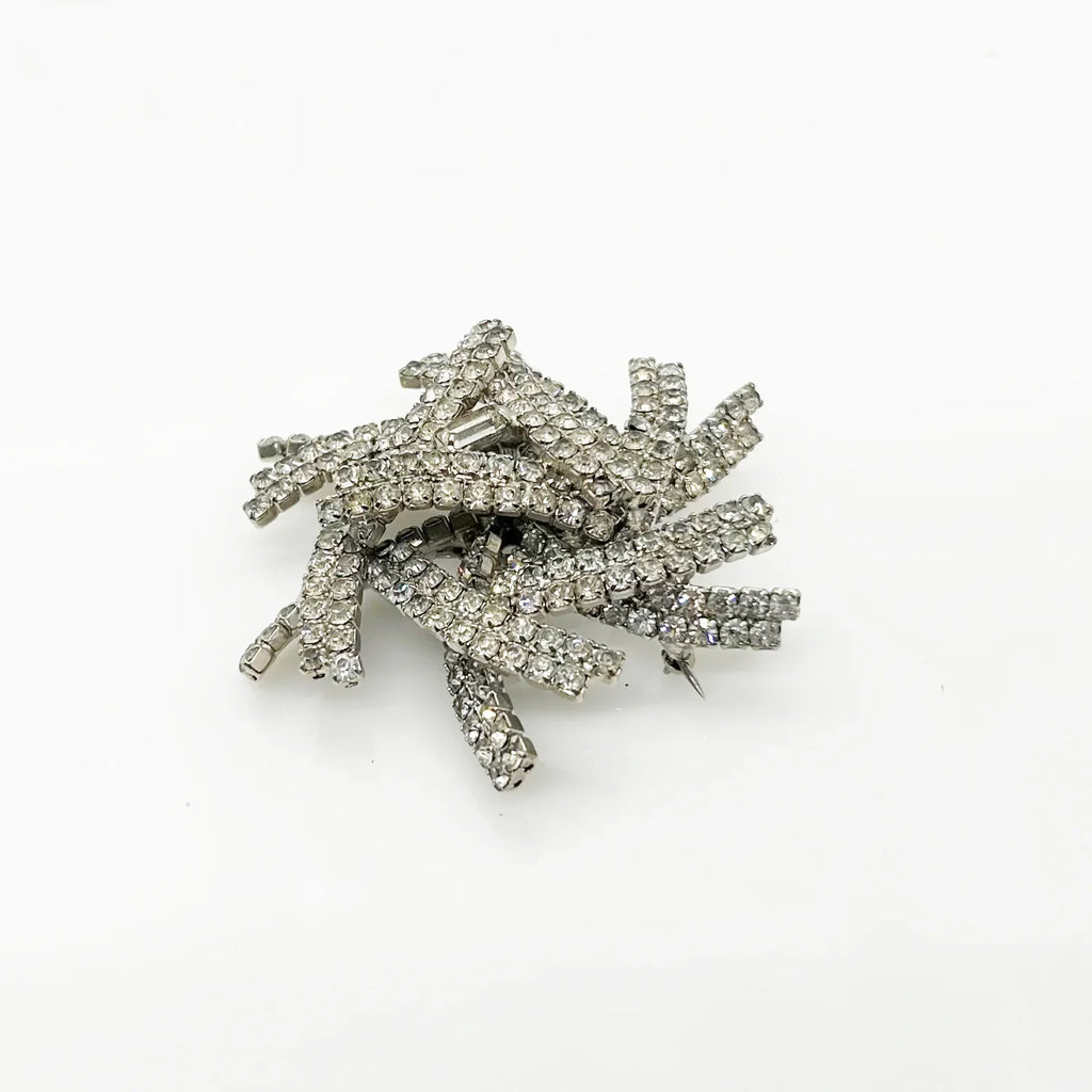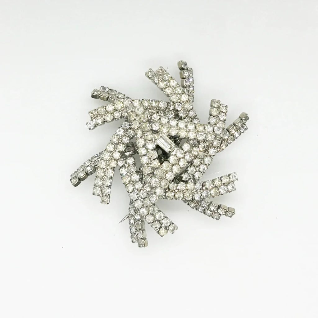 This brooch is truly a showstopper and a must-have for any jewelry lover. Its layered construction adds dimension and depth to the sparkling rhinestones, making it even more stunning in person. Measuring 3" across and rising almost 1" tall, it's a statement piece that will catch everyone's eye. Don't miss out on the opportunity to add this extraordinary brooch to your collection! Free Shipping