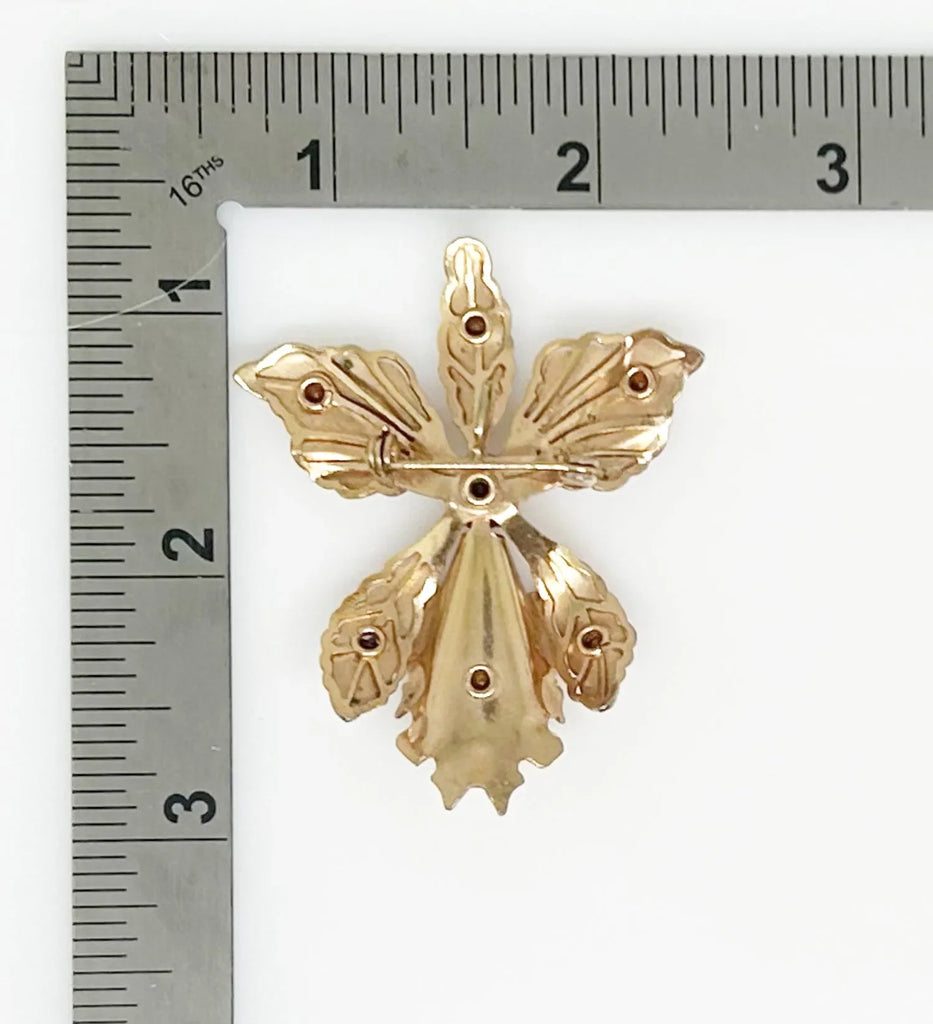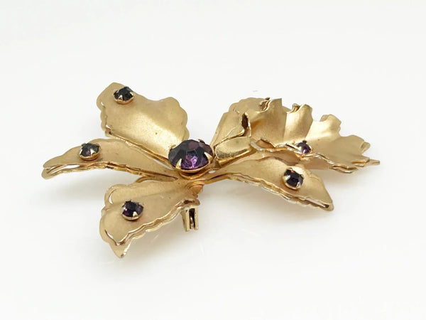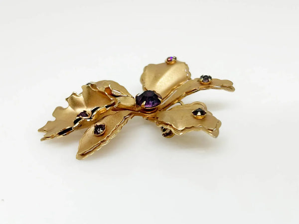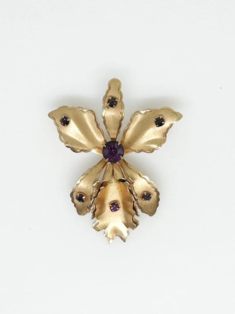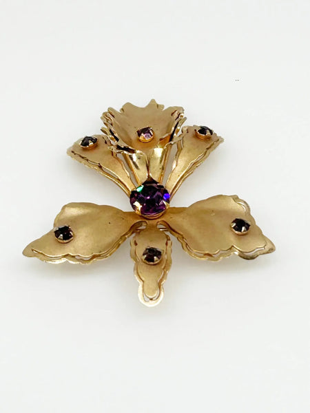 Vintage Orchid Brooch Studded with Purple Rhinestones