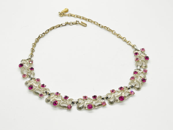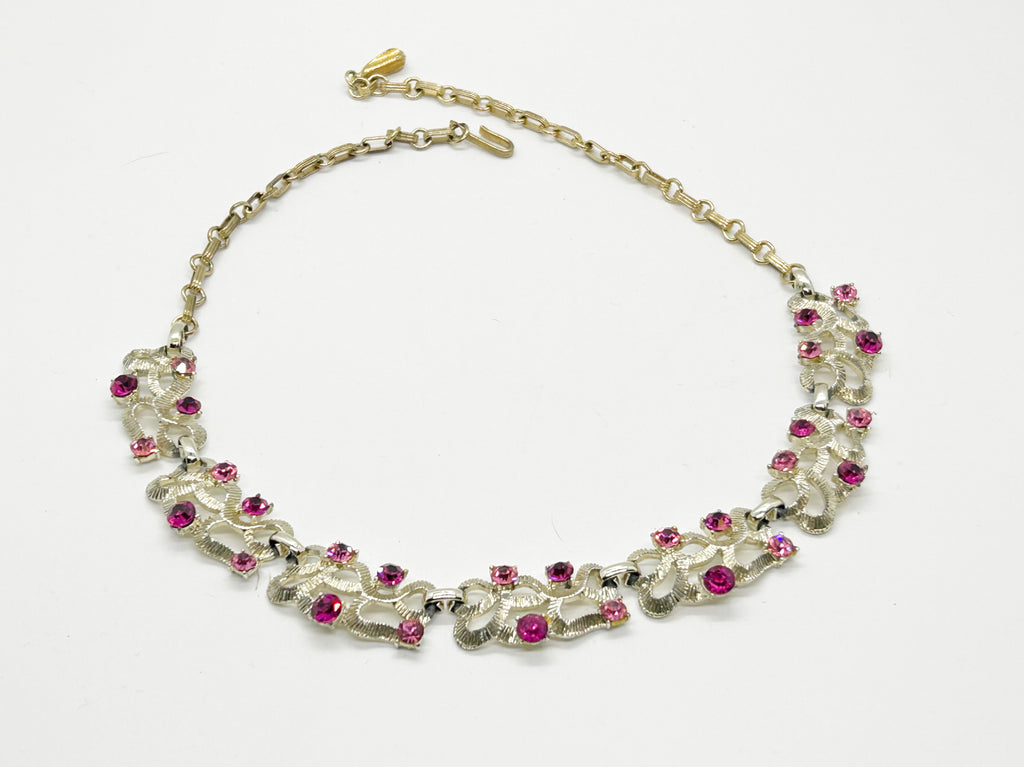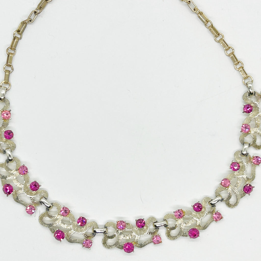 Vintage Pink and Magenta Rhinestone Choker Necklace. needs stone