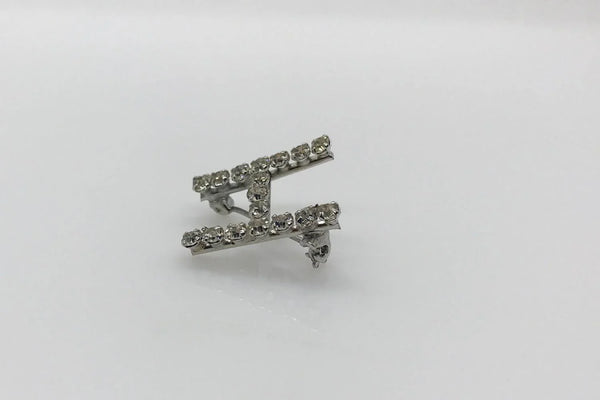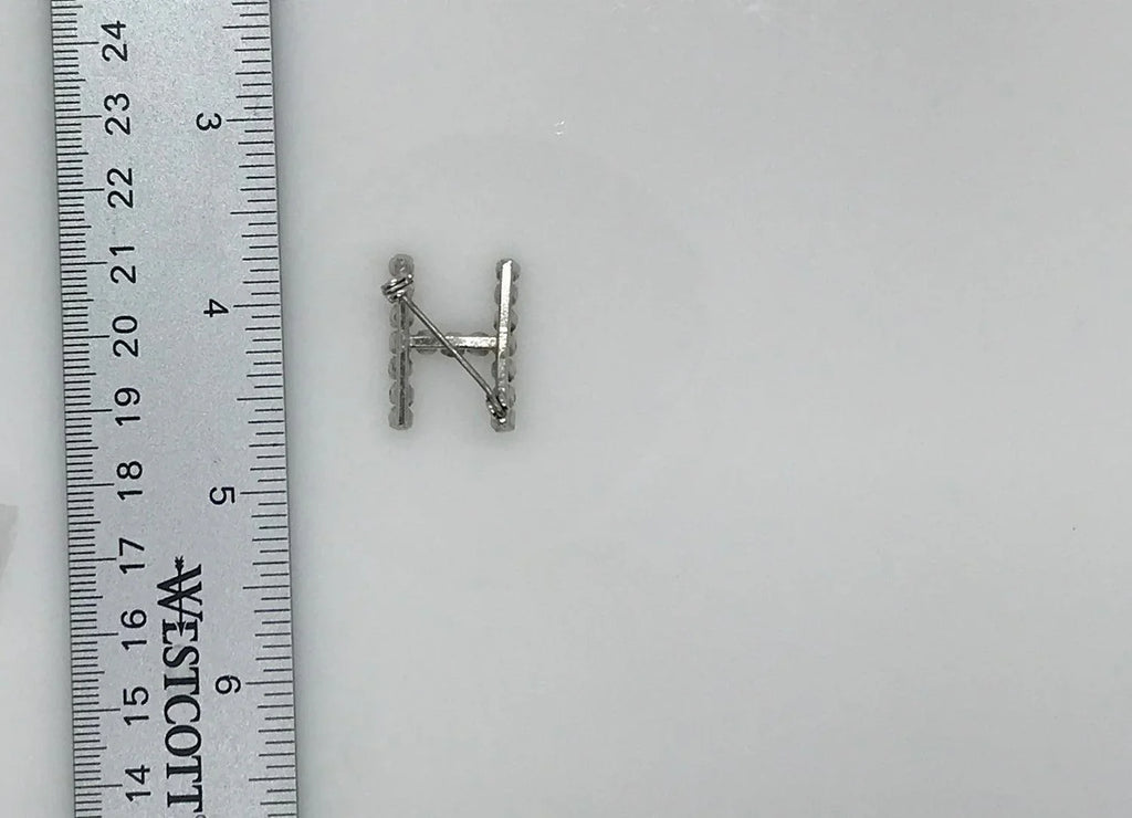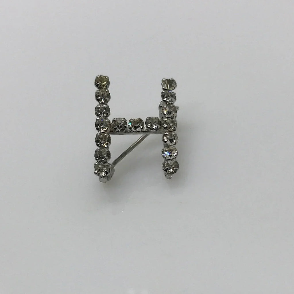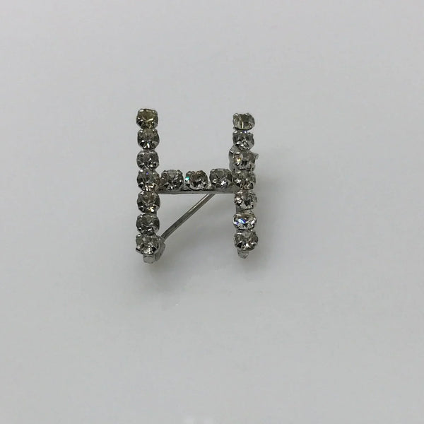 Make a statement with this stunning vintage rhinestone initial "H" Pin! The sparkling prong-set round rhinestones and impeccable condition make it a must-have for any vintage lover. At 1" tall, it's the perfect size to add a touch of elegance to any outfit. Don't miss out on this vintage gem!