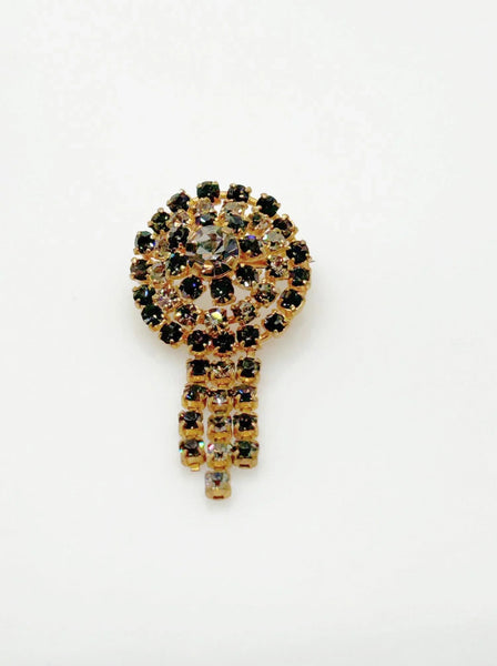 Vintage Gray and Black Rhinestone Domed Dangle Brooch