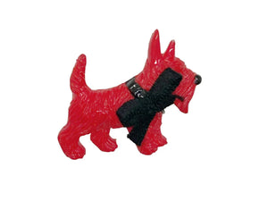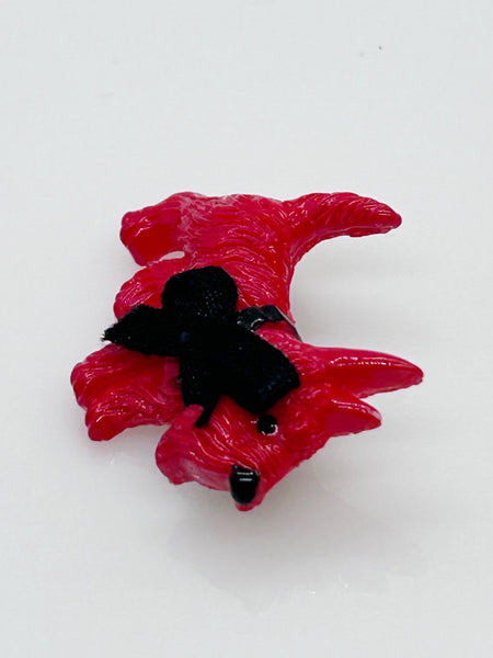 Vintage Red Plastic Scottie Dog with Black Fabric Bow