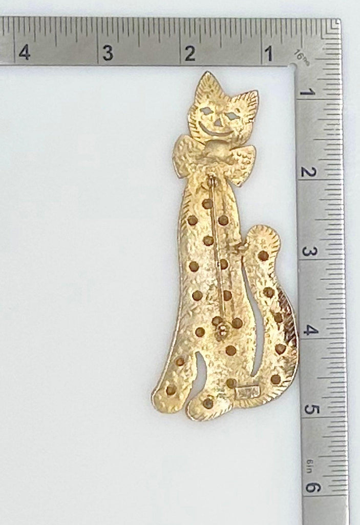 Vintage Signed Ultra Craft Gold Tone Kitty Cat Pin Brooch