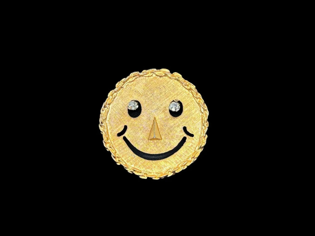 Vintage Smiley Face Pendant with Rhinestone Eyes – Lamoree’s Vintage
