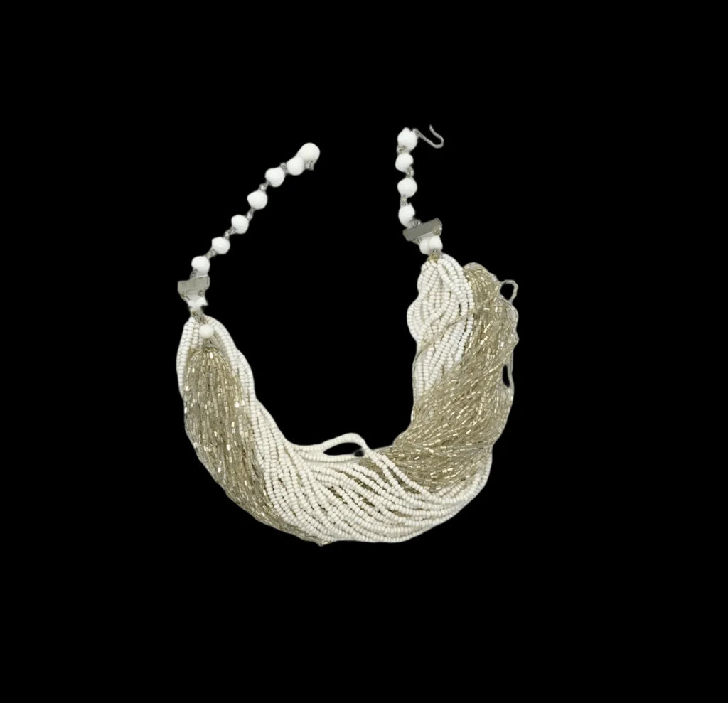 Rich Fifty-Six Strand Silver and White Beaded Necklace